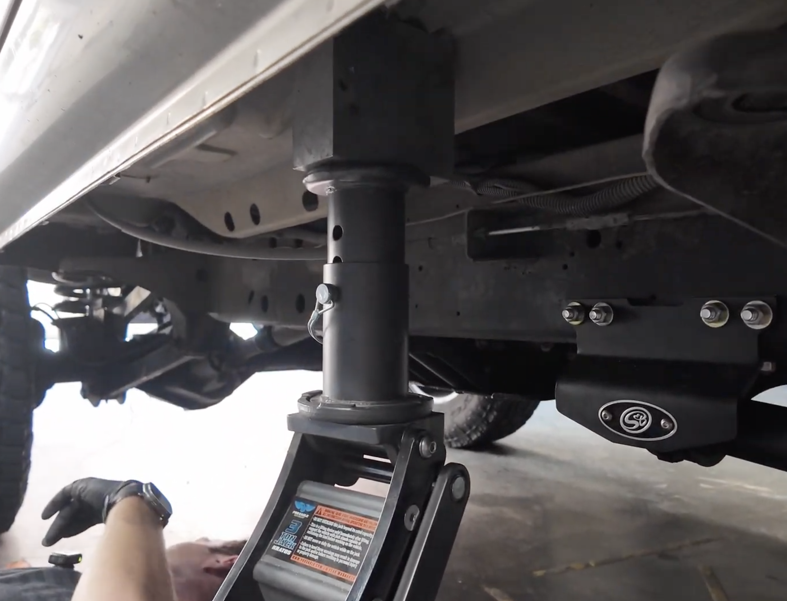 Now, go ahead and jack up the Passenger Side of the body/cab using a floor jack with extension or wooden block.
