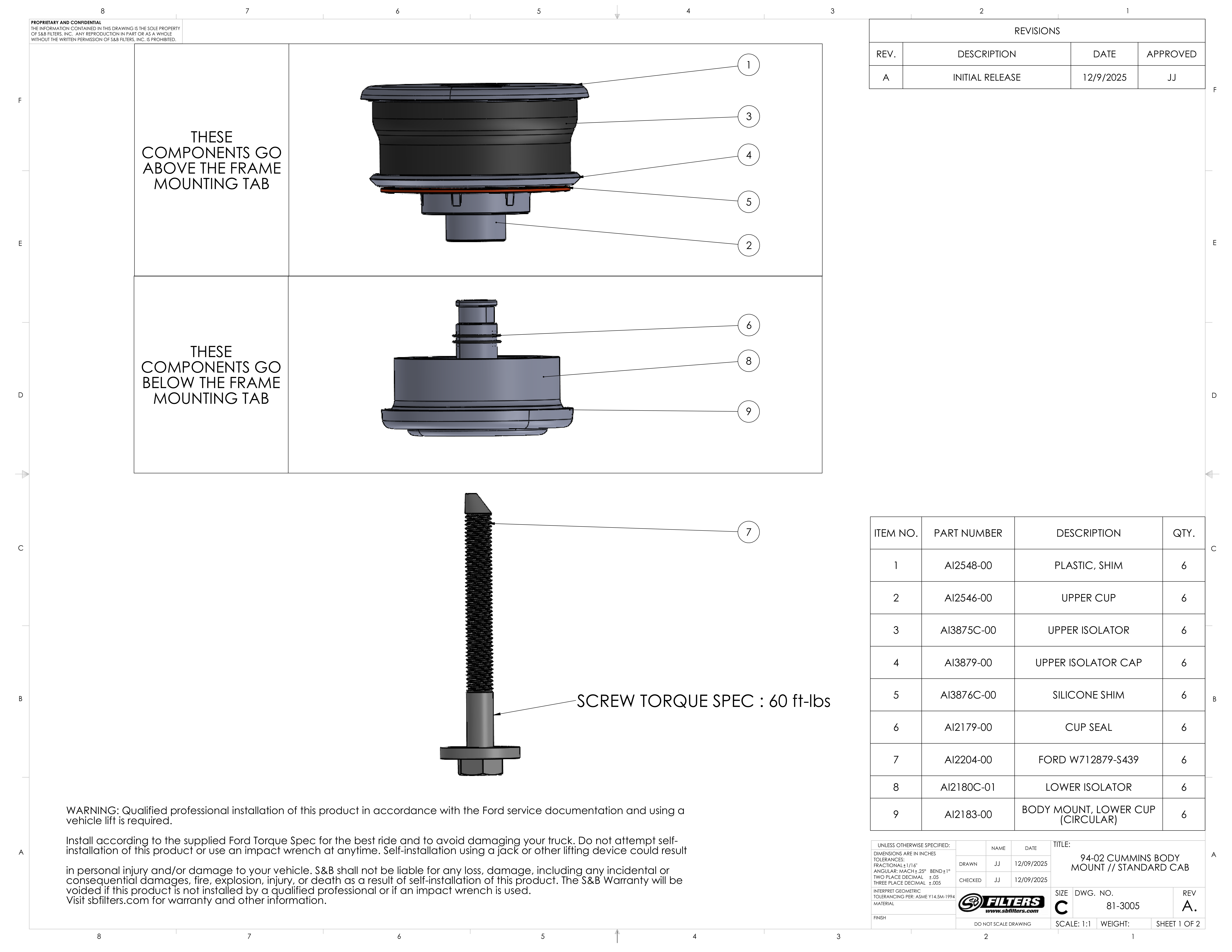 Then move on down the line and install the upper-half of every body mount on the Passenger Side while the cab is up in the air.