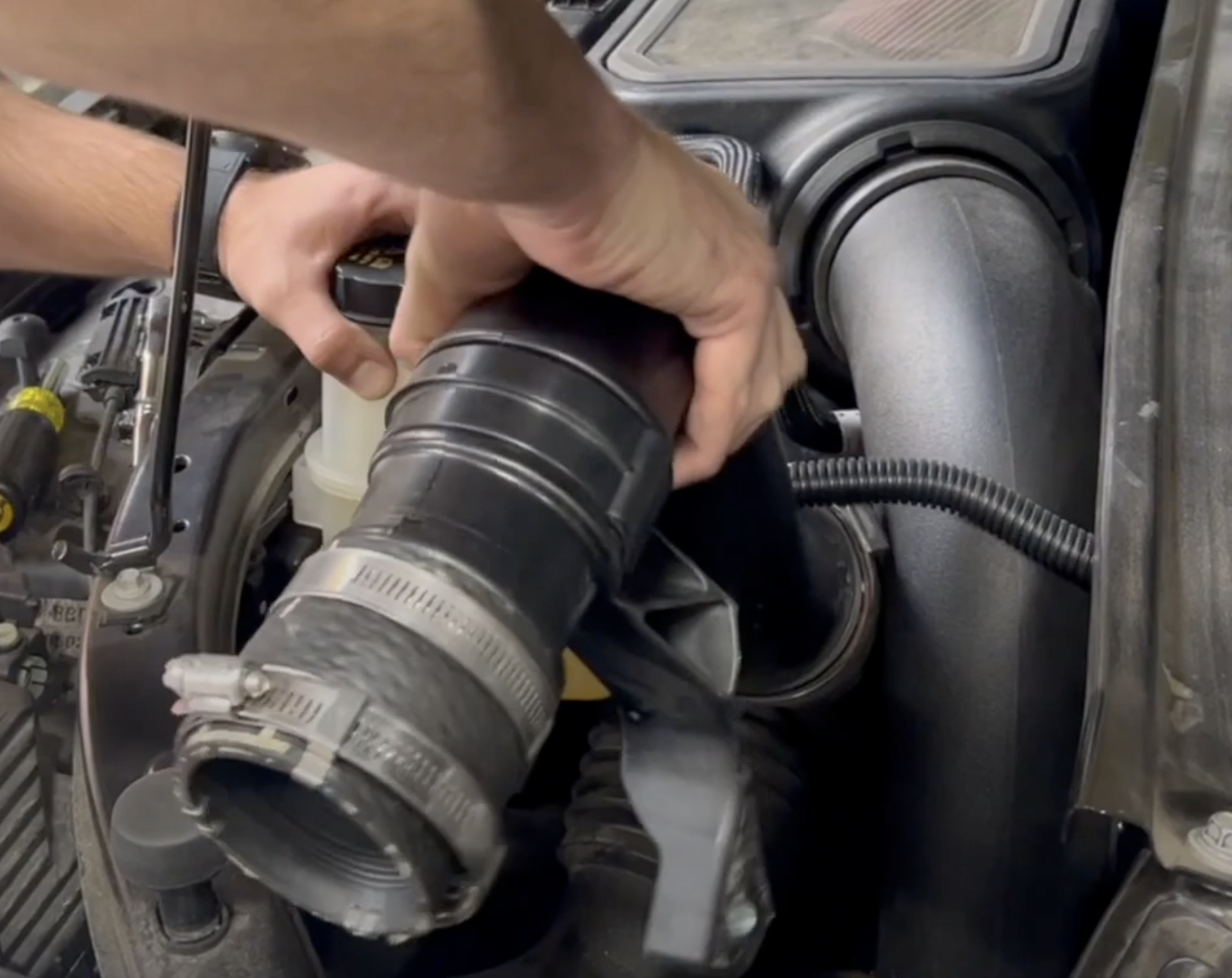 Start by feeding the S&B pipe onto the throttle body first.