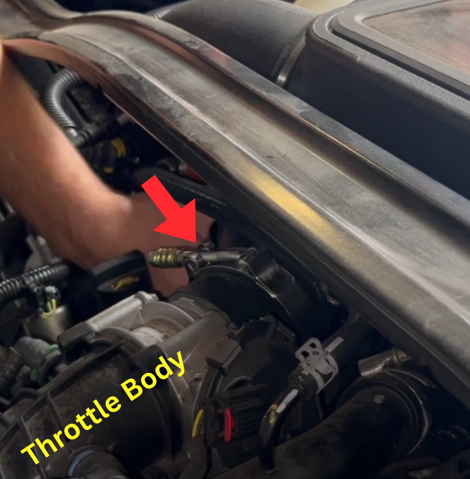 Using the same 7mm socket, go ahead and disconnect the stock pipe from the throttle body.
