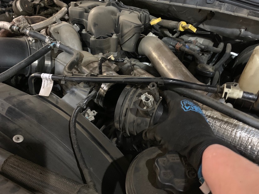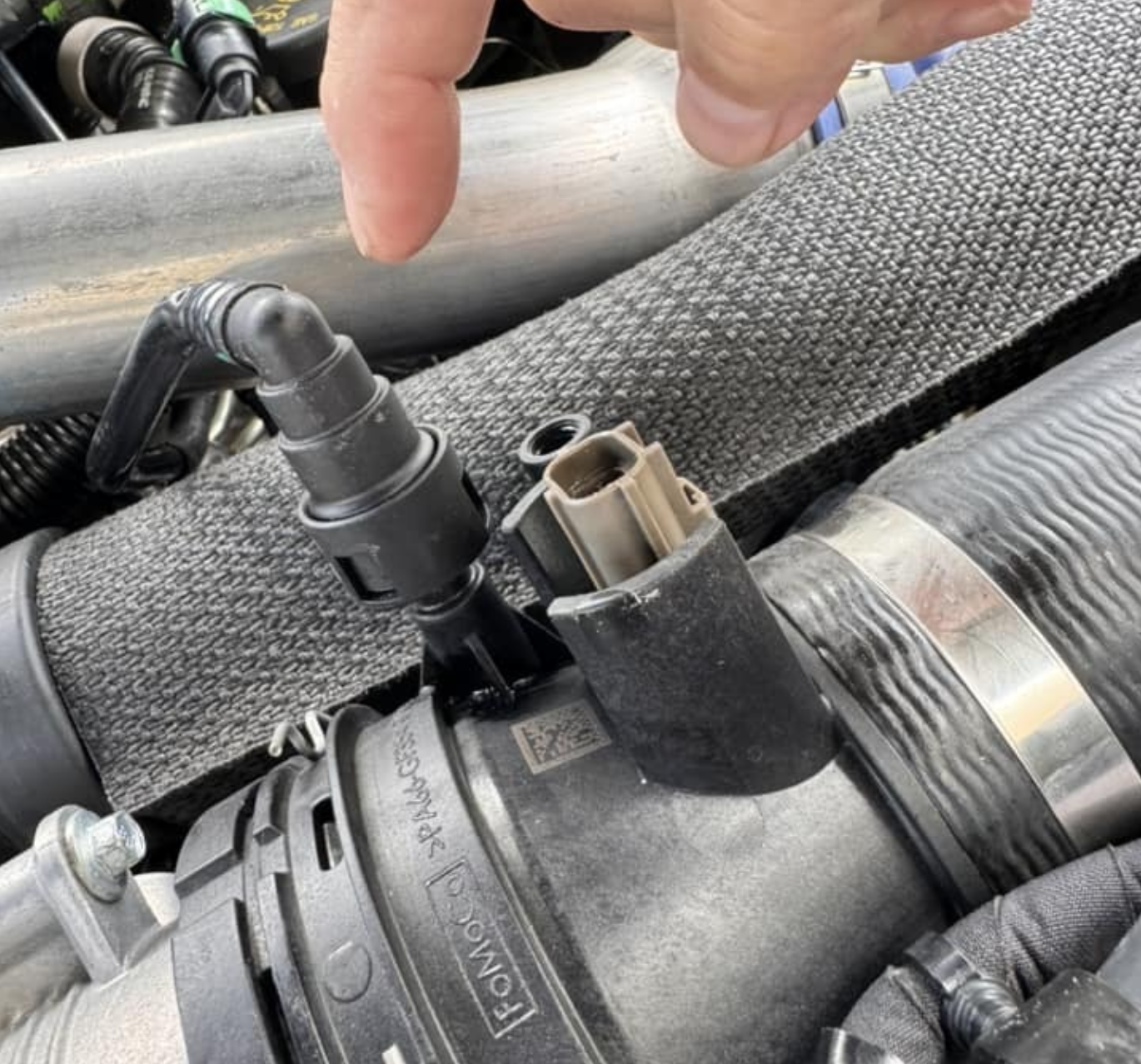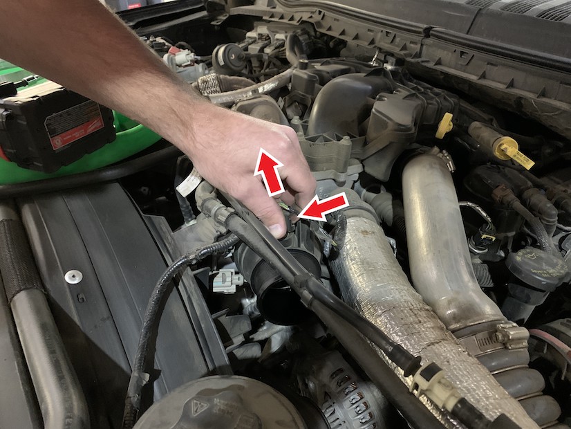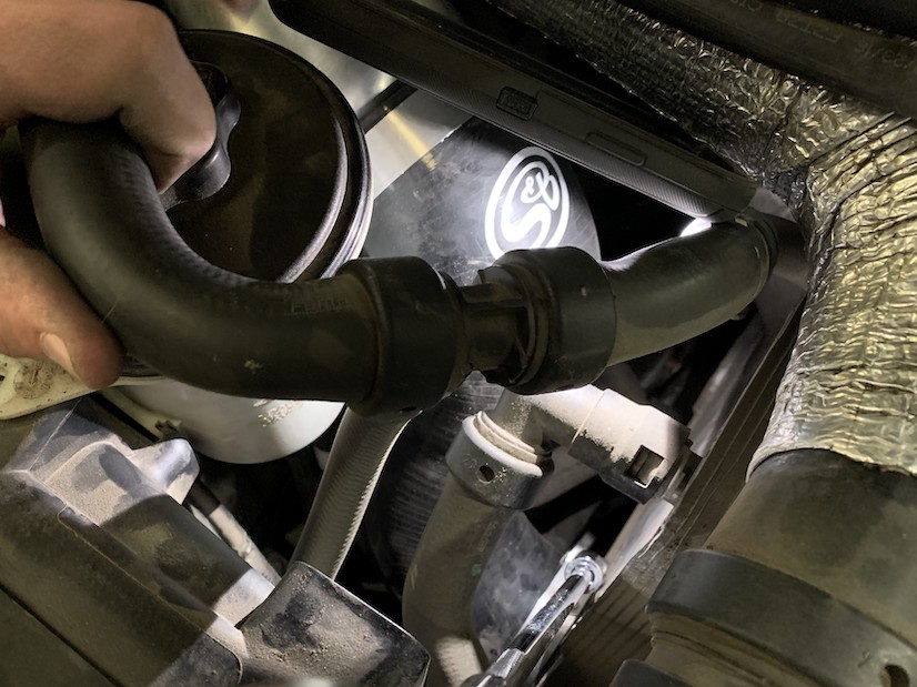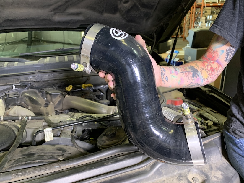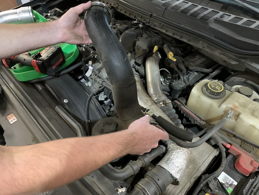 Slide the hose off the upper hose barb and the intercooler outlet and remove from the vehicle.