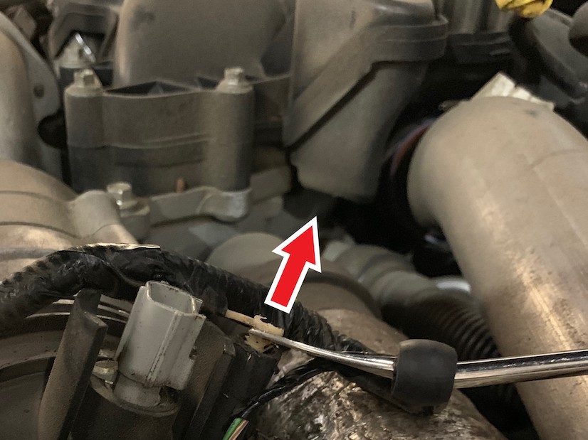 Depress the locking clip and remove the electrical connector from the air temperature sensor.