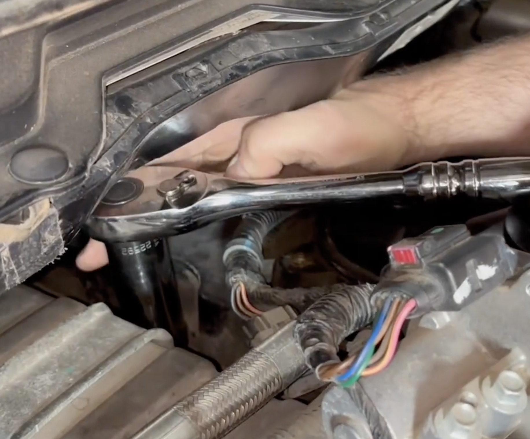 Connect the other side of the S&B Heater Core Supply Hose to the S&B fitting. Then tighten it down using the same 7mm socket, extension, and ratchet.