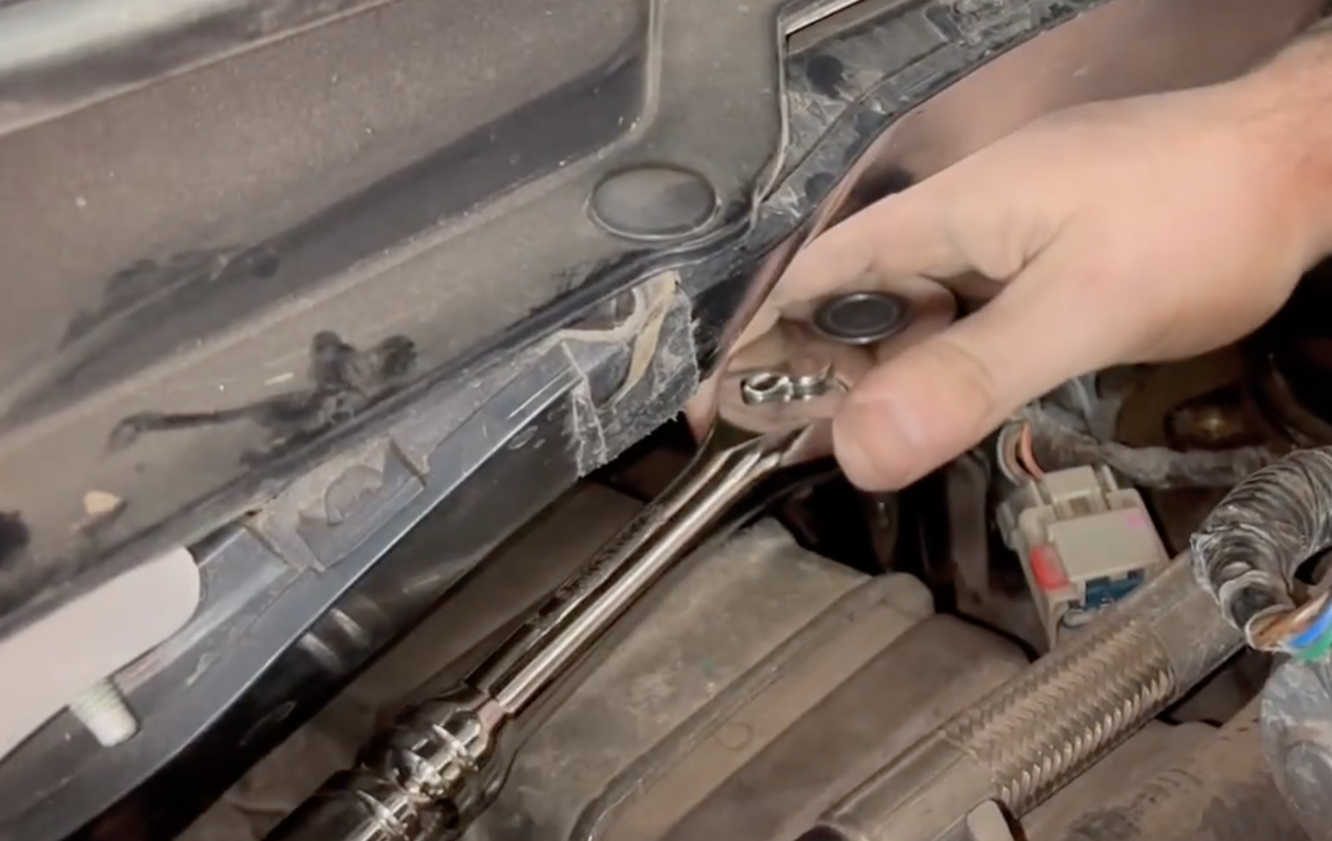 Using a 7/8th deep socket and ratchet, unscrew the OE fitting for the OE heater core supply hose.