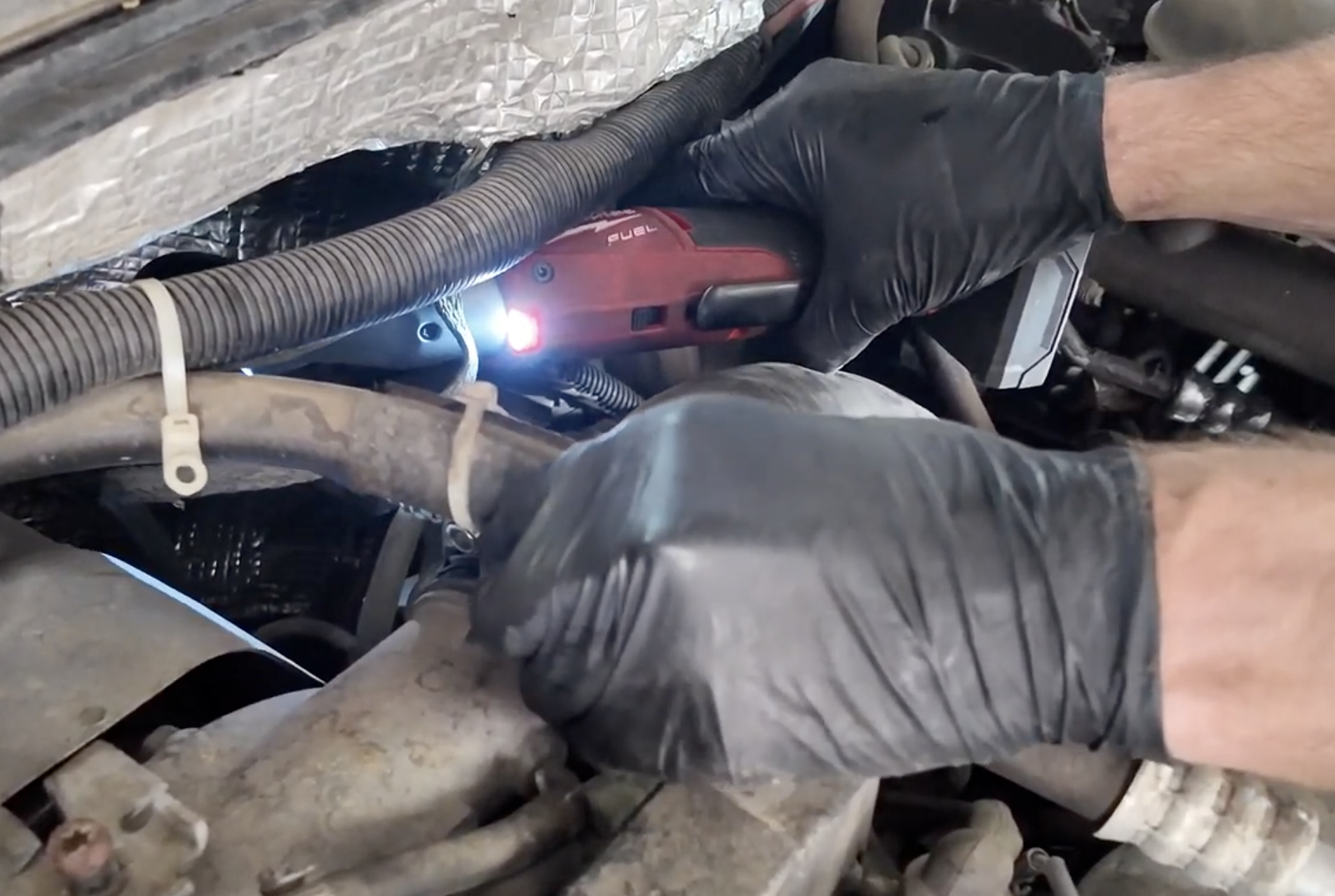 Loosen the stock clamps (2) holding the Upper Cold Side Boot by using an 11mm deep socket.