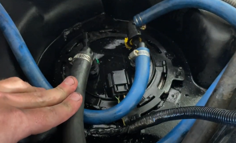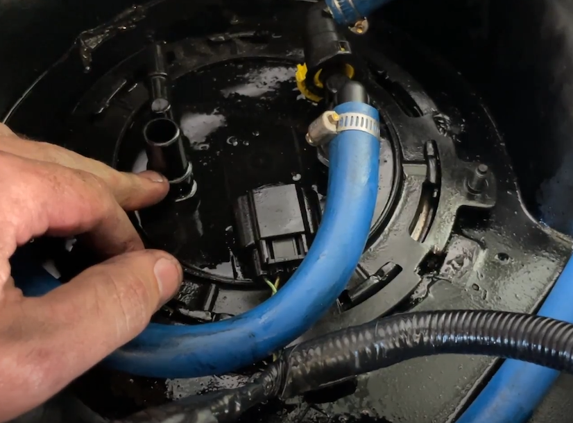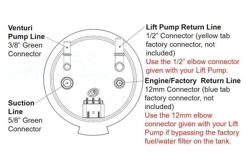 Begin by following S&B Tank instructions to drop the tank and remove the sending unit. Also, follow your lift pump installation instructions but DO NOT MODIFY your stock sending unit. WARNING: The S&B Sending Unit is optimized for aftermarket lift pumps set to 65 PSI, do NOT exceed 70 psi on your lift pump!