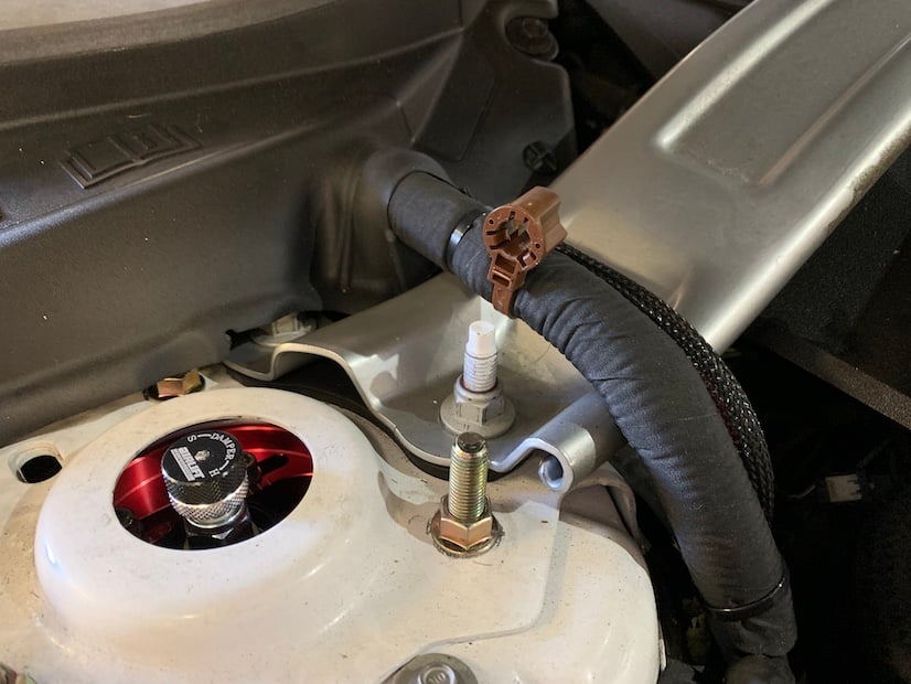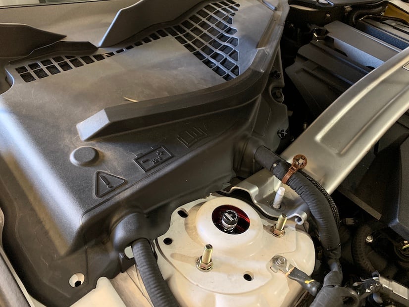 Reinstall the strut tower brace and the four screws removed in step 4.