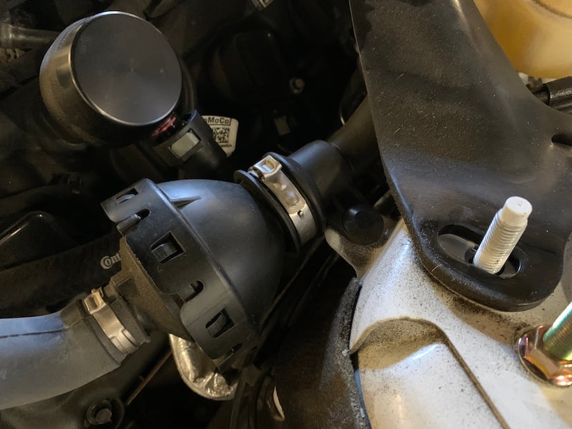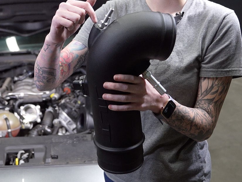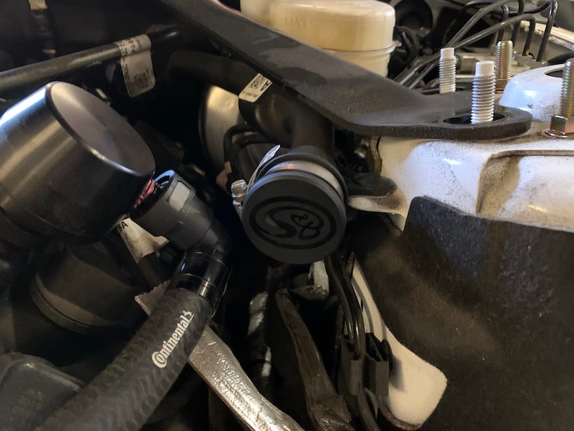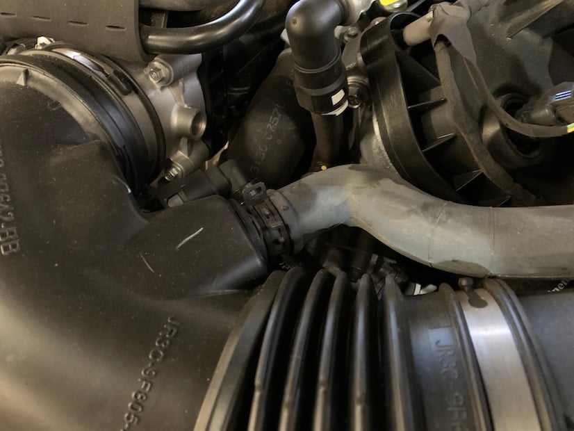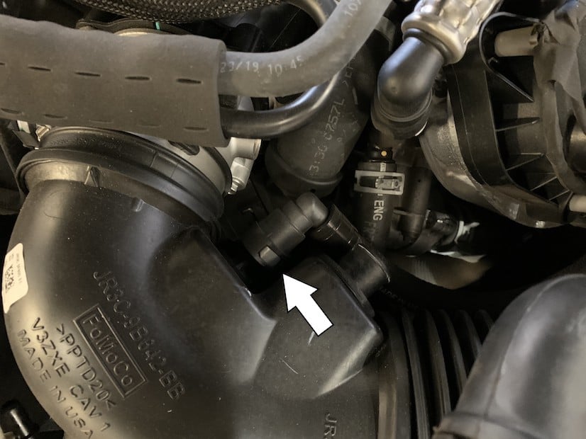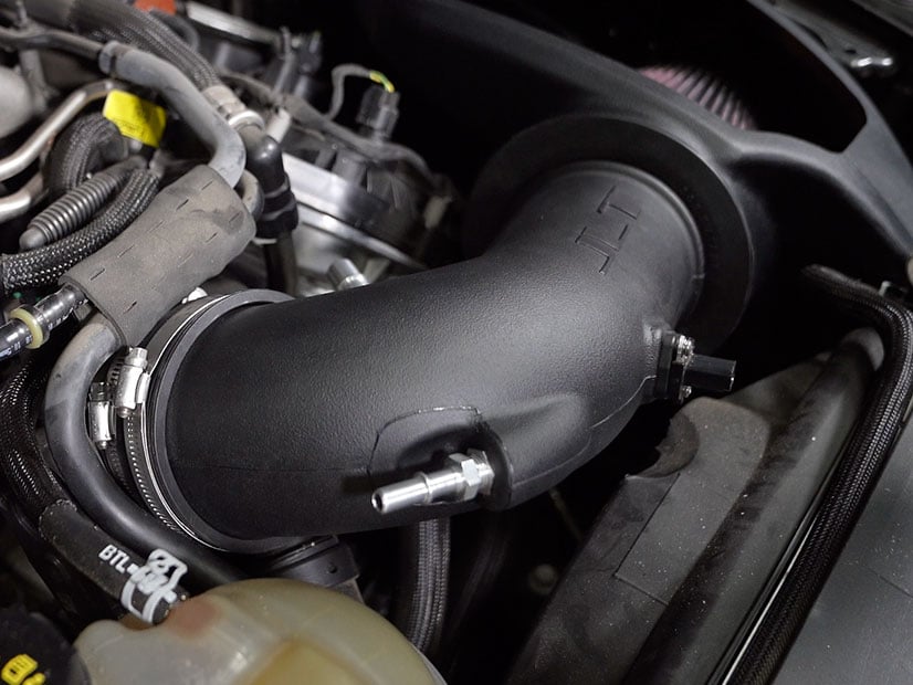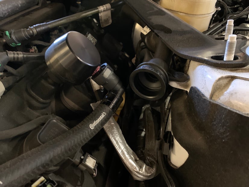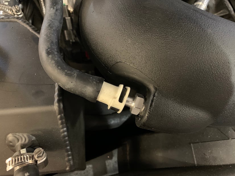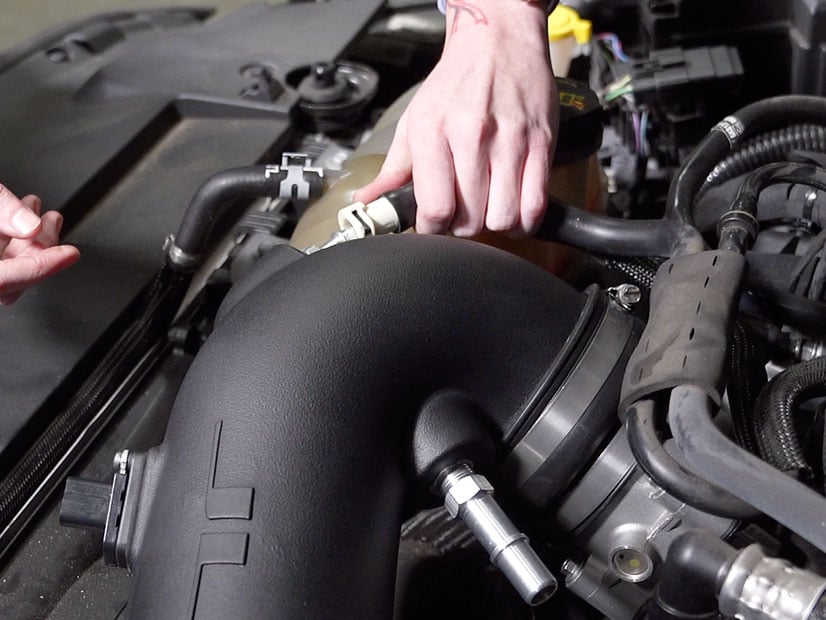 Connect the PCV hose to the JLT intake tube, pressing it onto the ⅜ NPT quick connect.