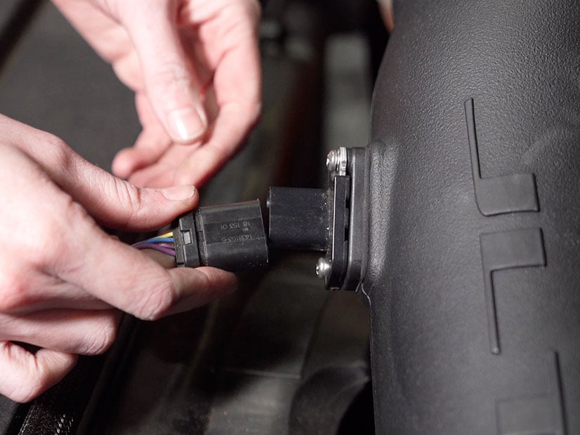 Reconnect the MAF sensor harness to the MAF sensor by pressing forward on the red locking tab.