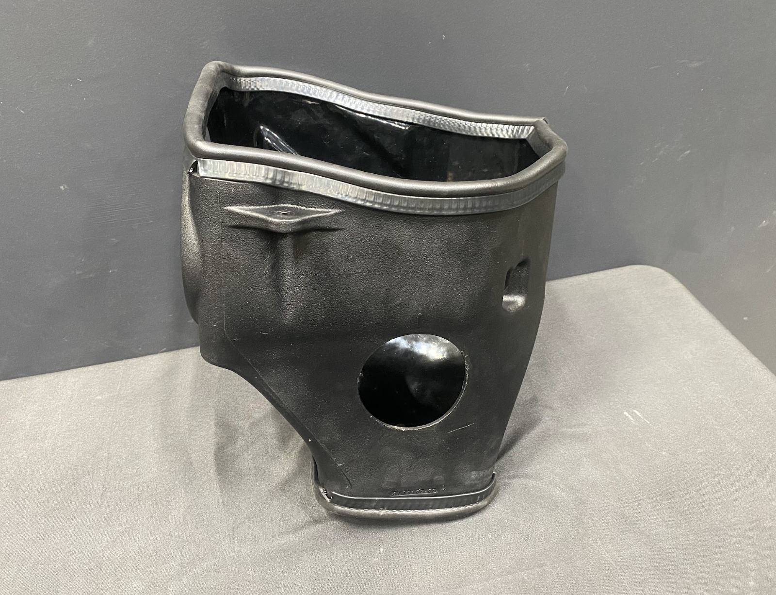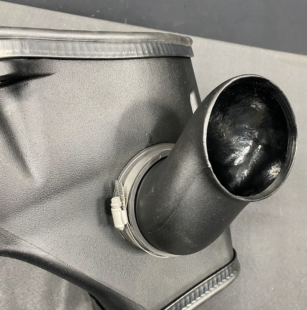 Cut the corrugated hose connected to the stock intake at the end connected to the vehicle, being careful to not damage the barbs on the fitting.