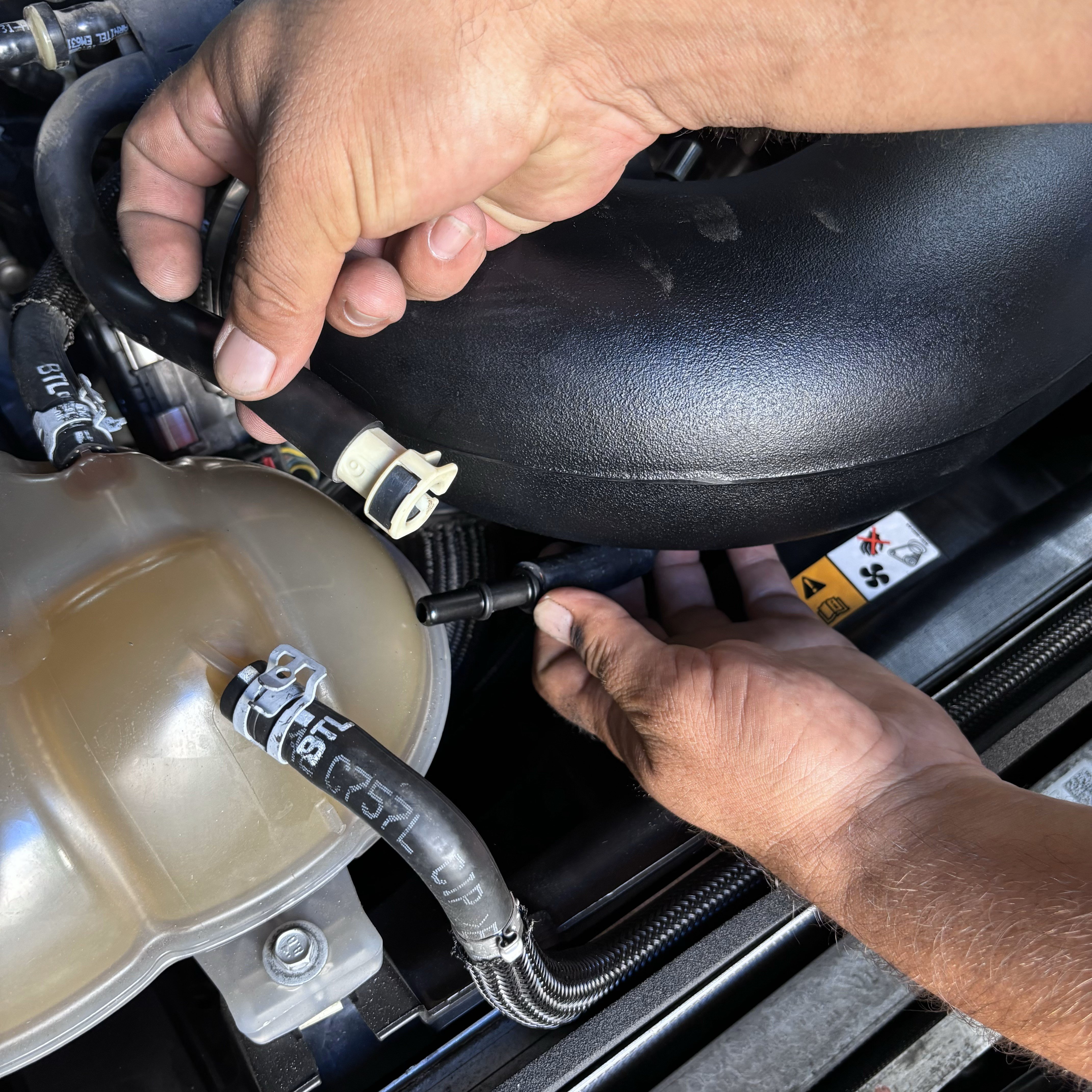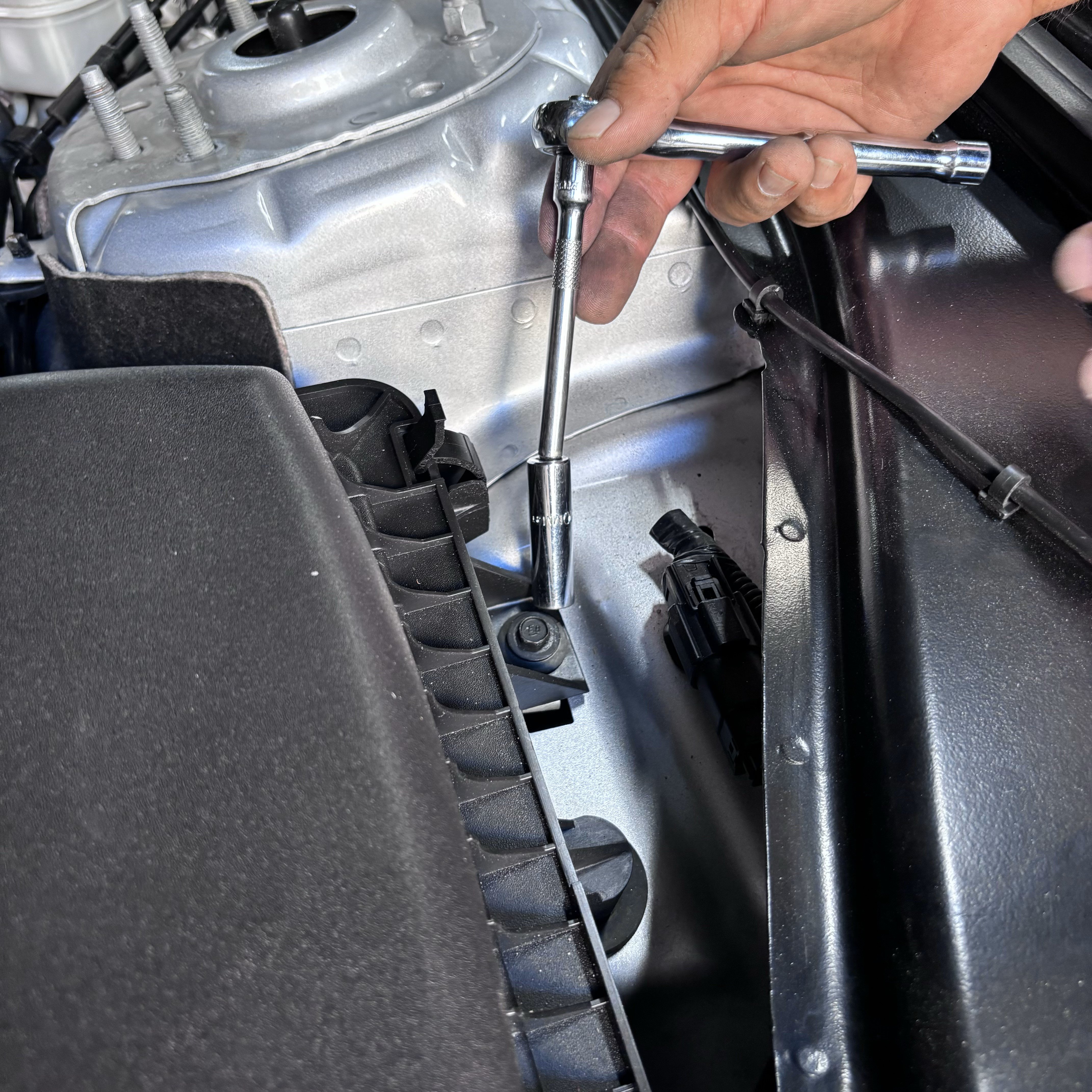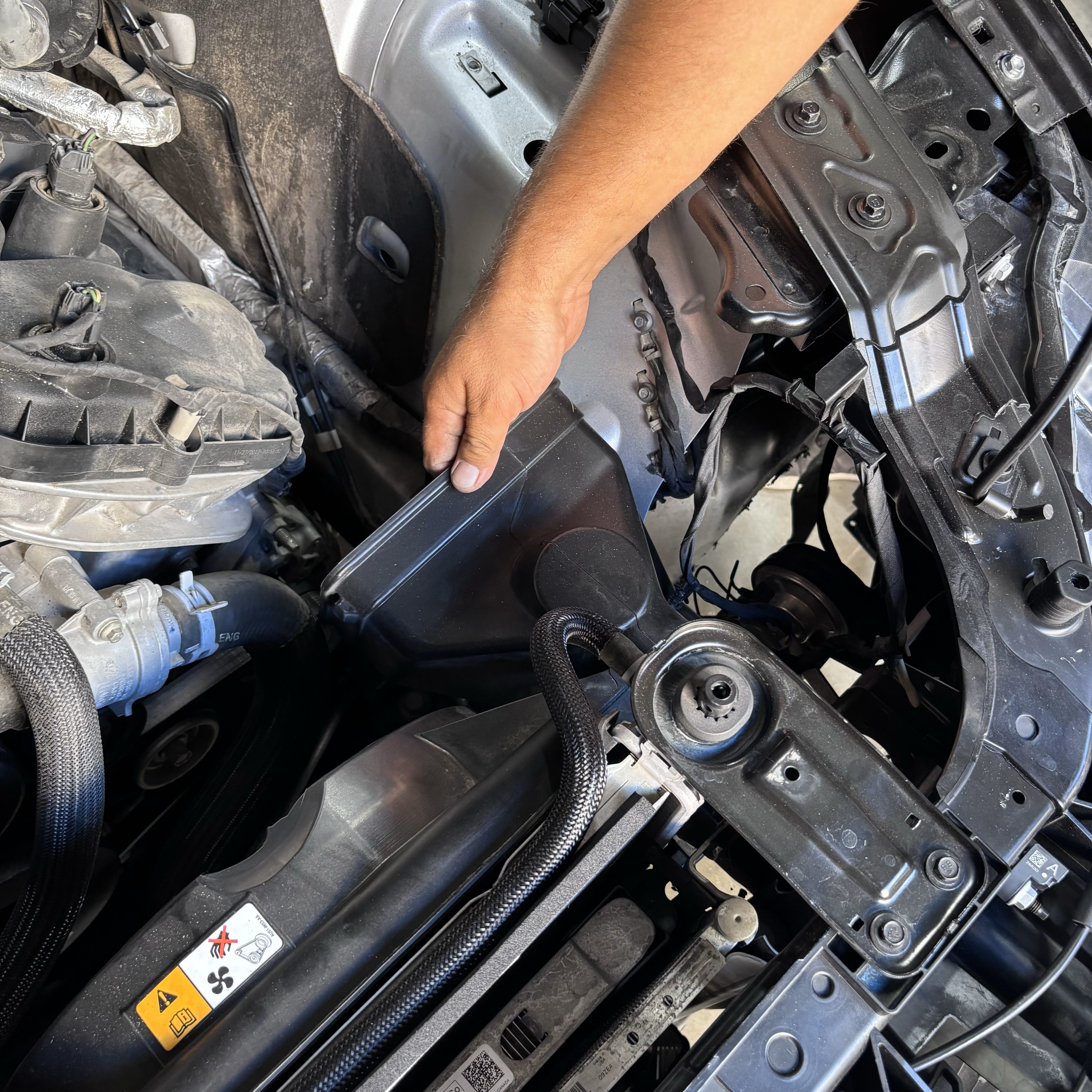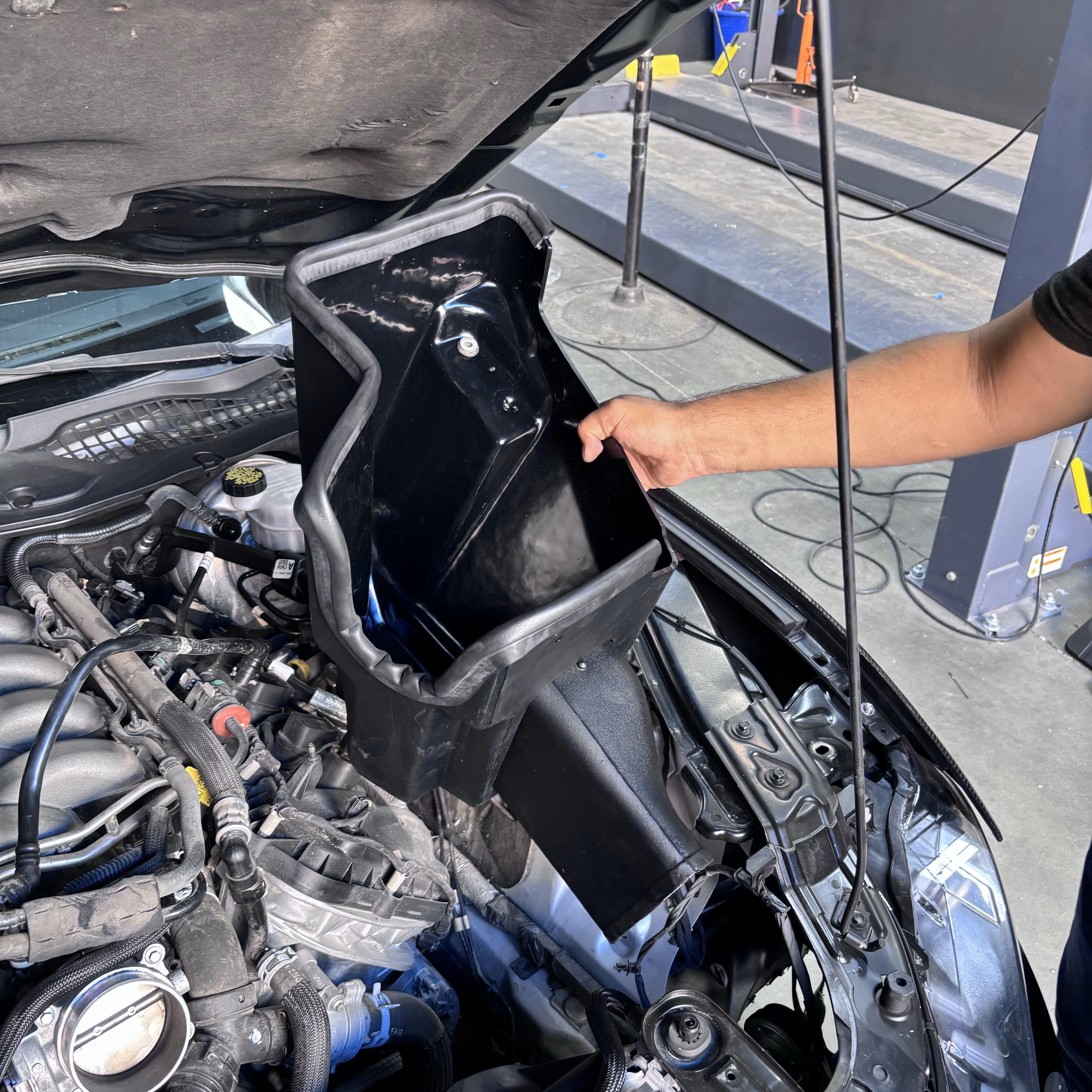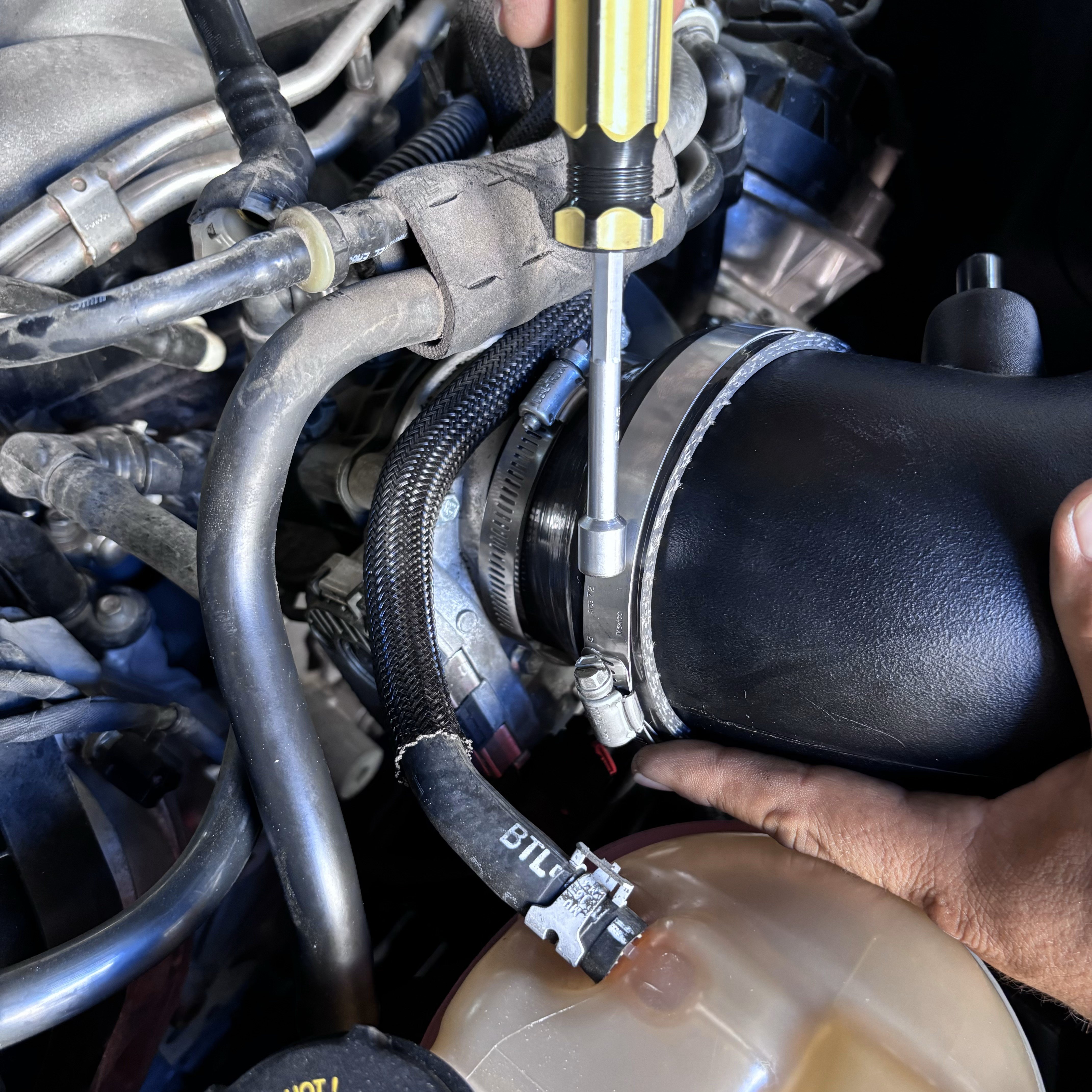 Install the heat shield insert onto the tube. Double check all connections are tight and there is proper clearance around the intake and with the hood.