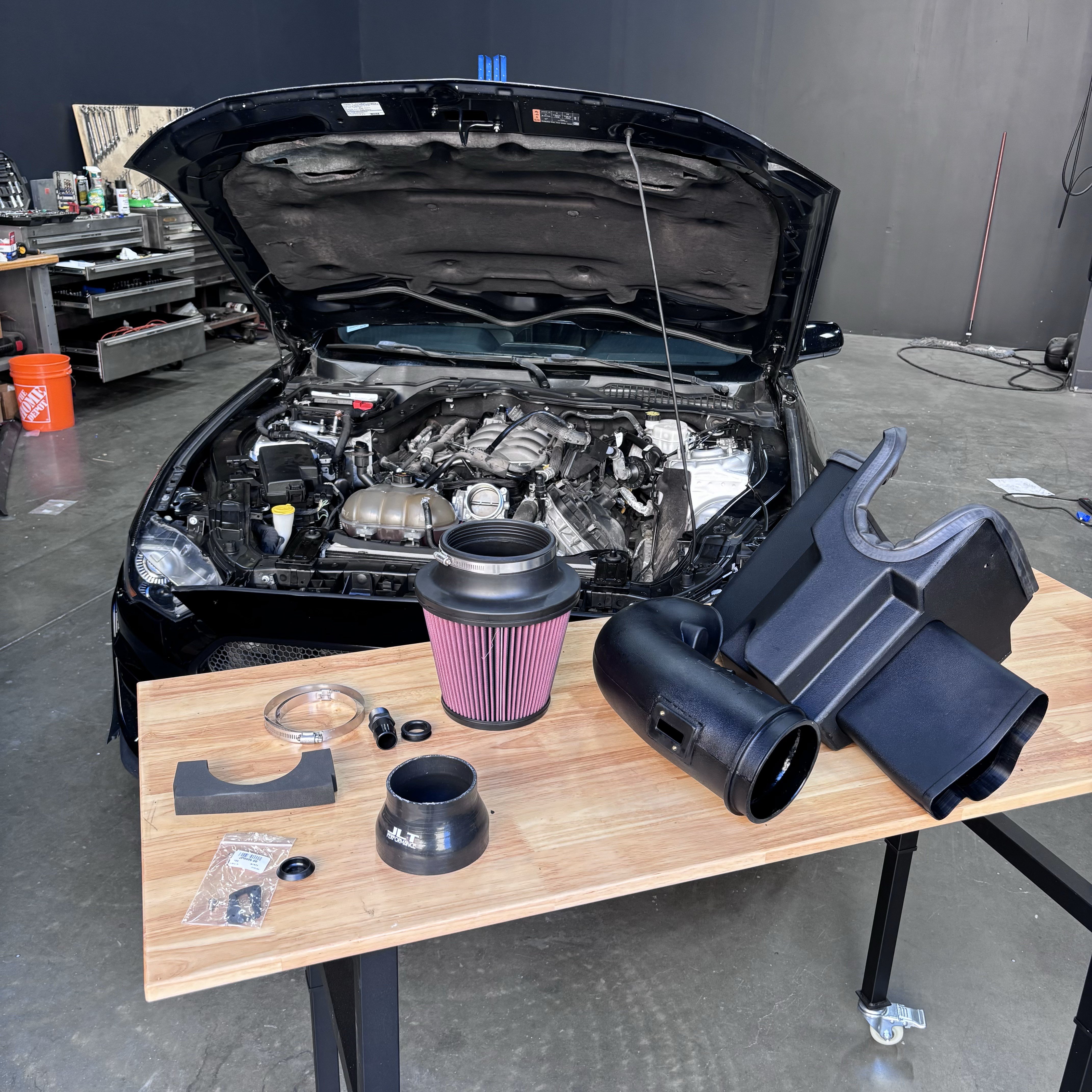 Install the JLT airbox and scoop into the car. The scoop should be inside the airbox so it fits.