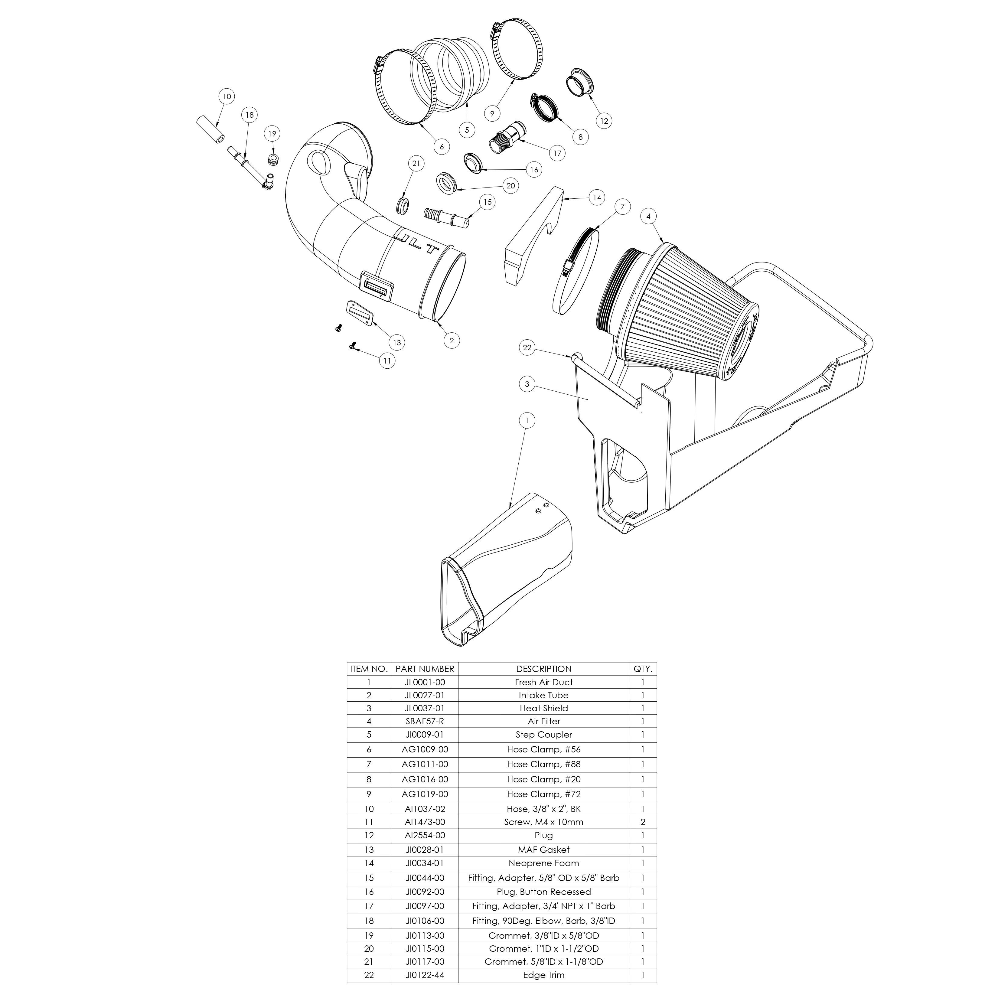 *Remember, the car will not run properly without a tune that has the properly scaled MAF readings. The JLT Tuner part # is R03-PL0-04-WHT if you have don't have a tuner purchased.