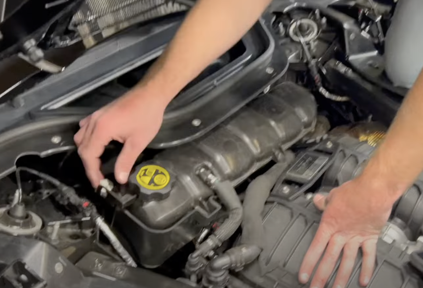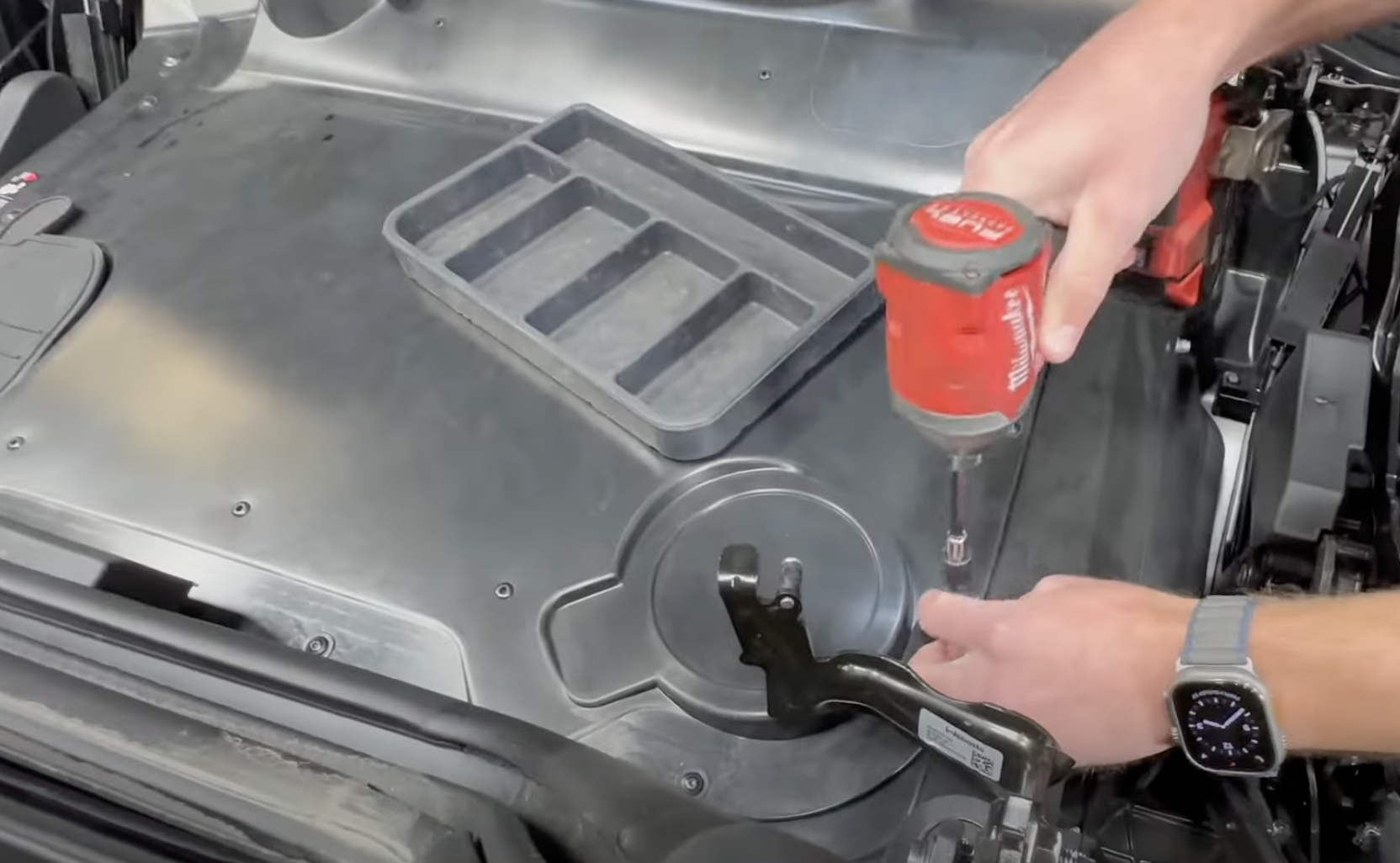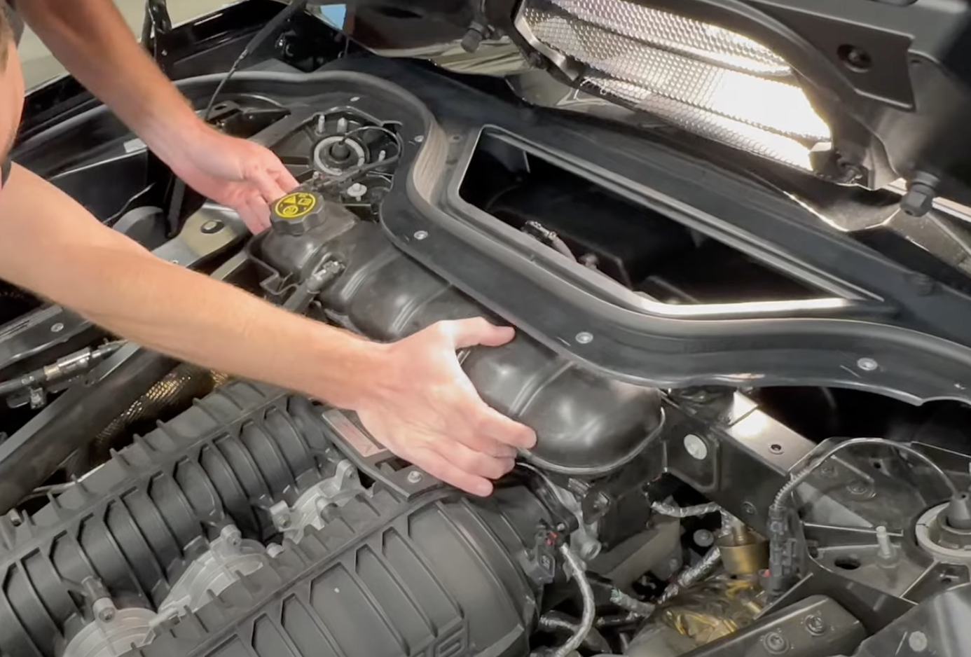 Remove the engine cover from the vehicle. Save the bolts for later.
