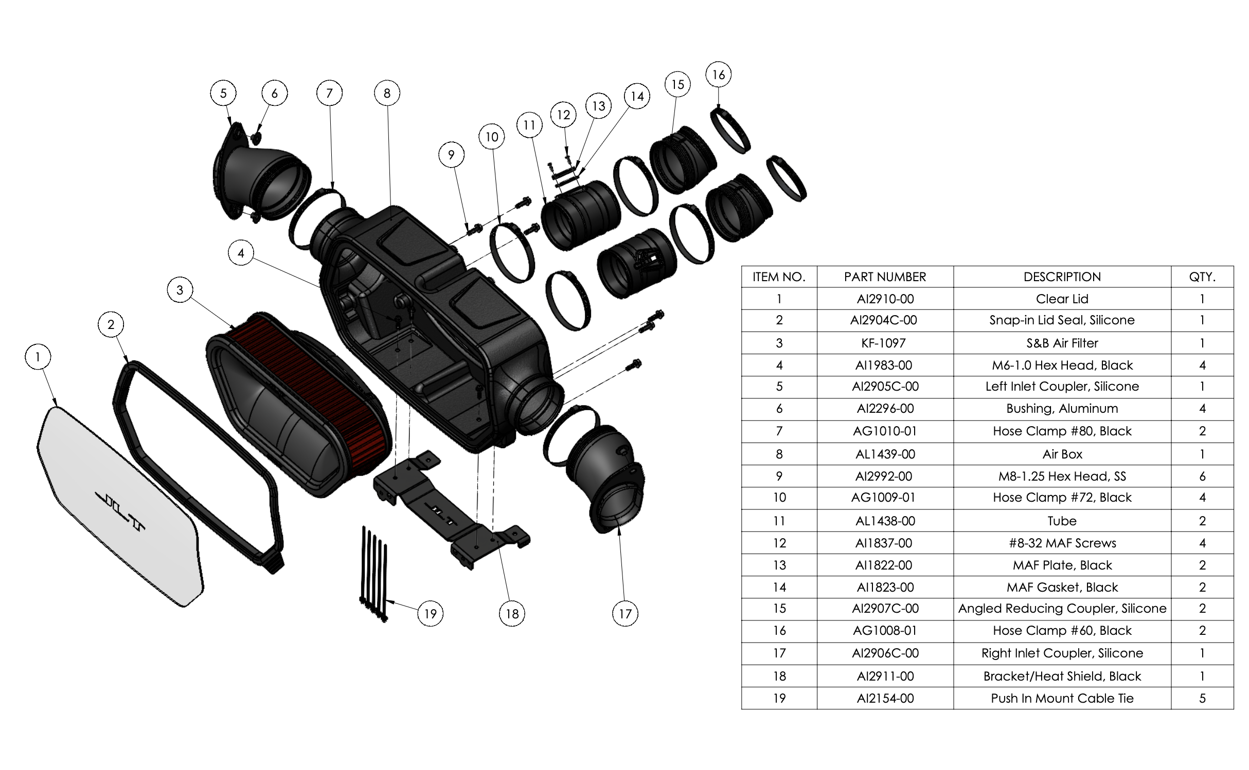 Note: This intake kit may not fit with the following Aftermarket Parts installed: