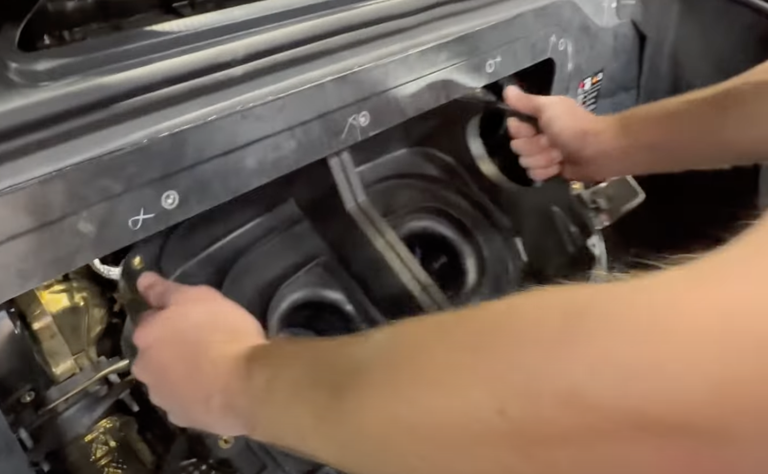Remove the 10mm bolts that secure down the factory scoops. (on both driver and passenger side)