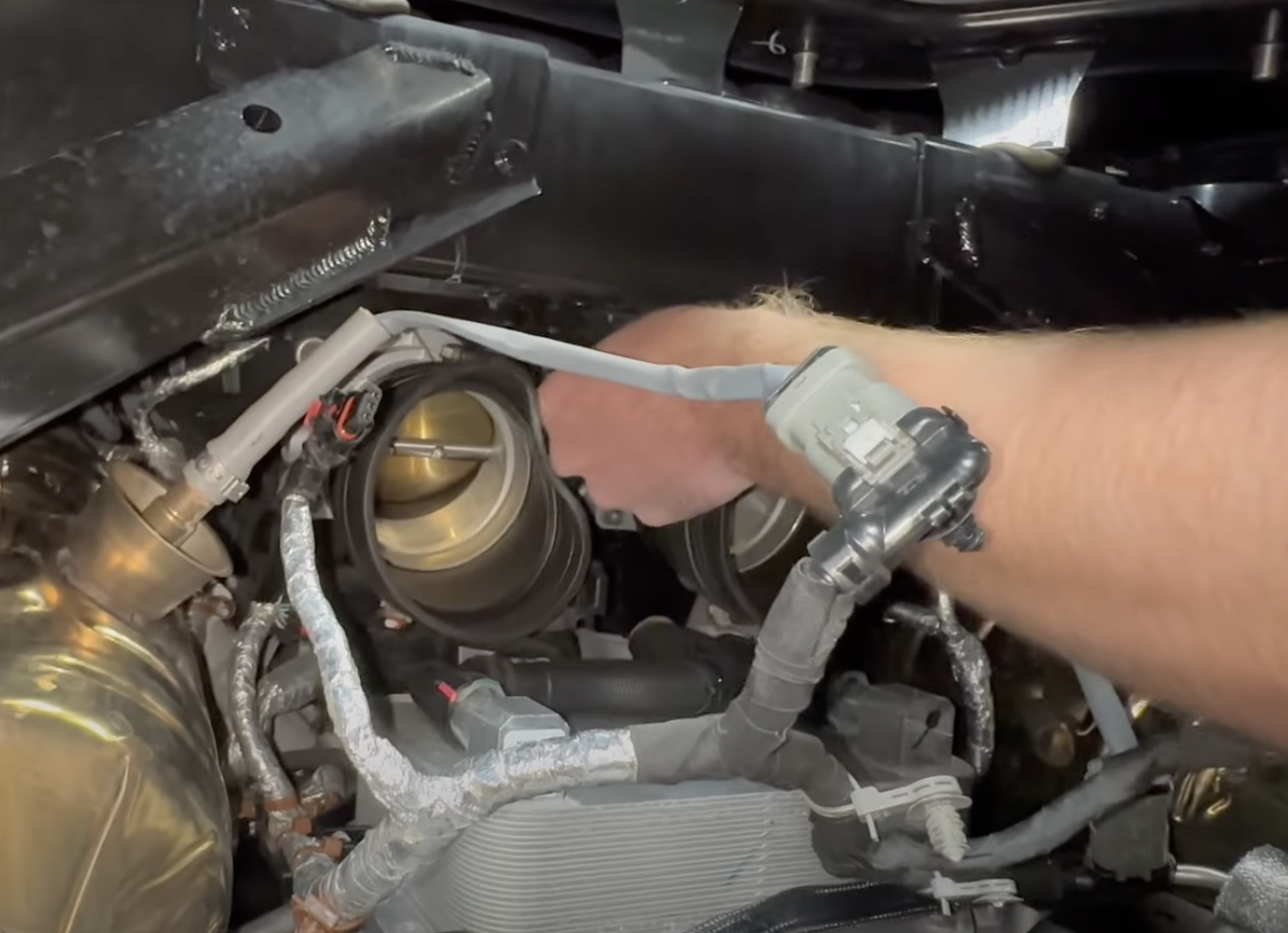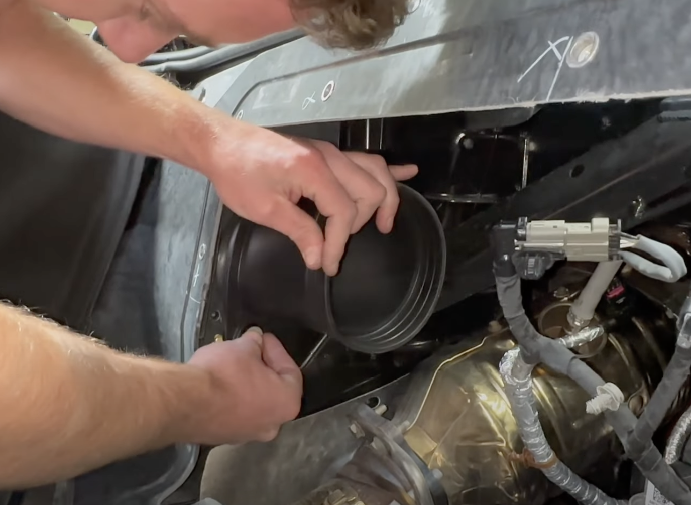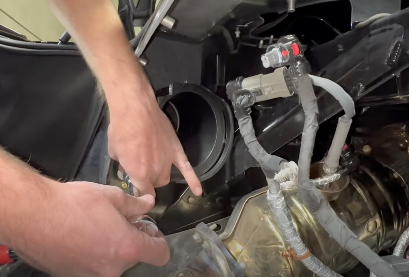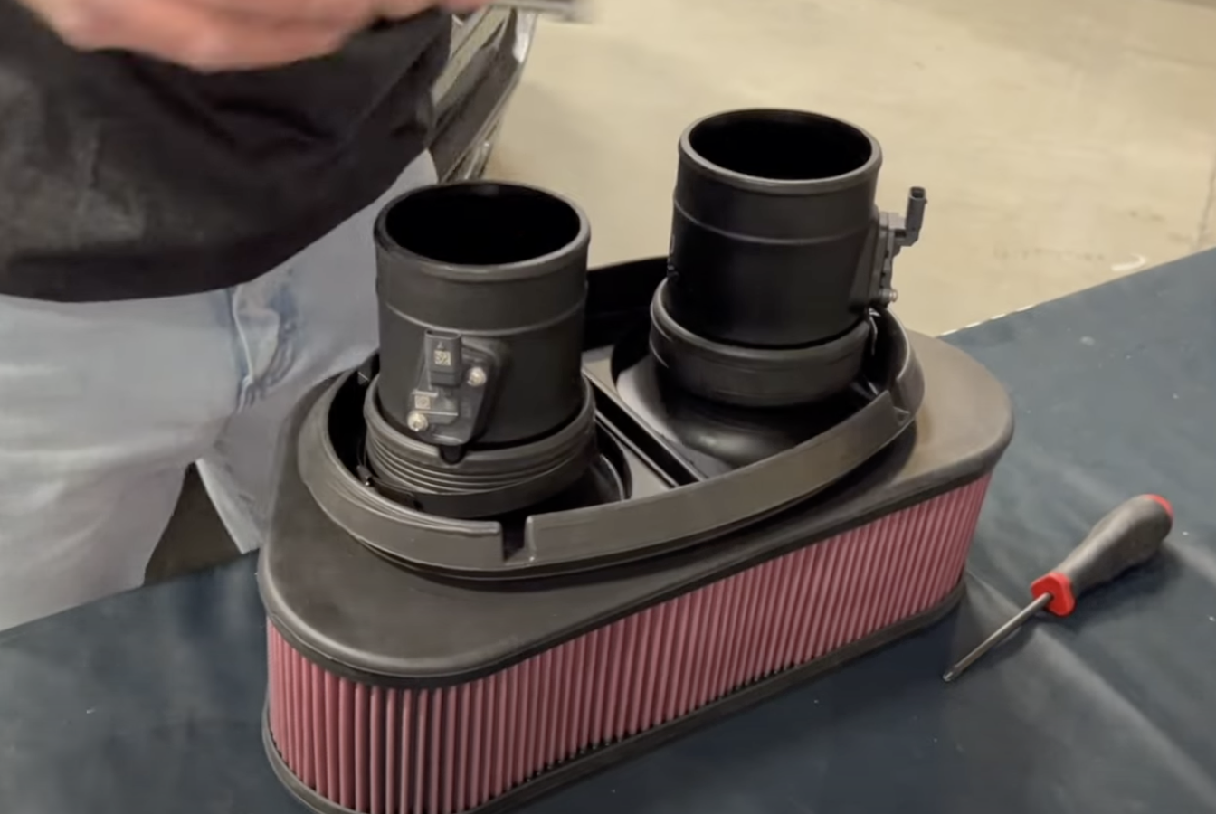 Disconnect the MAF harnesses as seen in the image. To see how to remove, please refer to our install video starting at 2:30.
