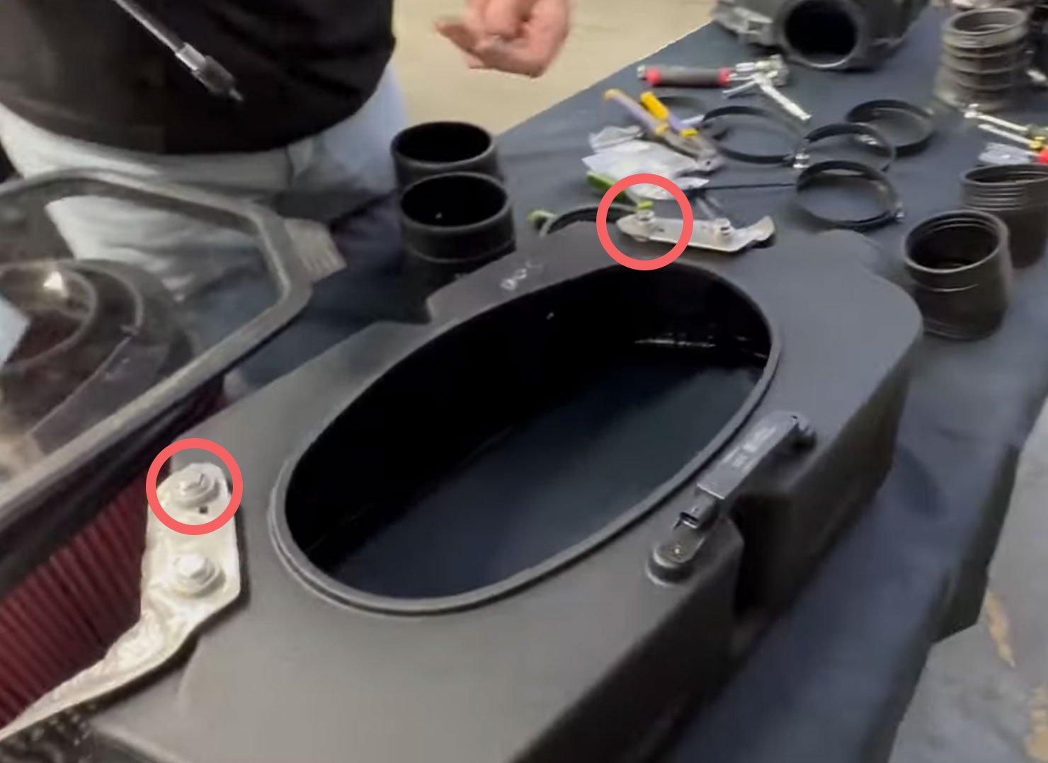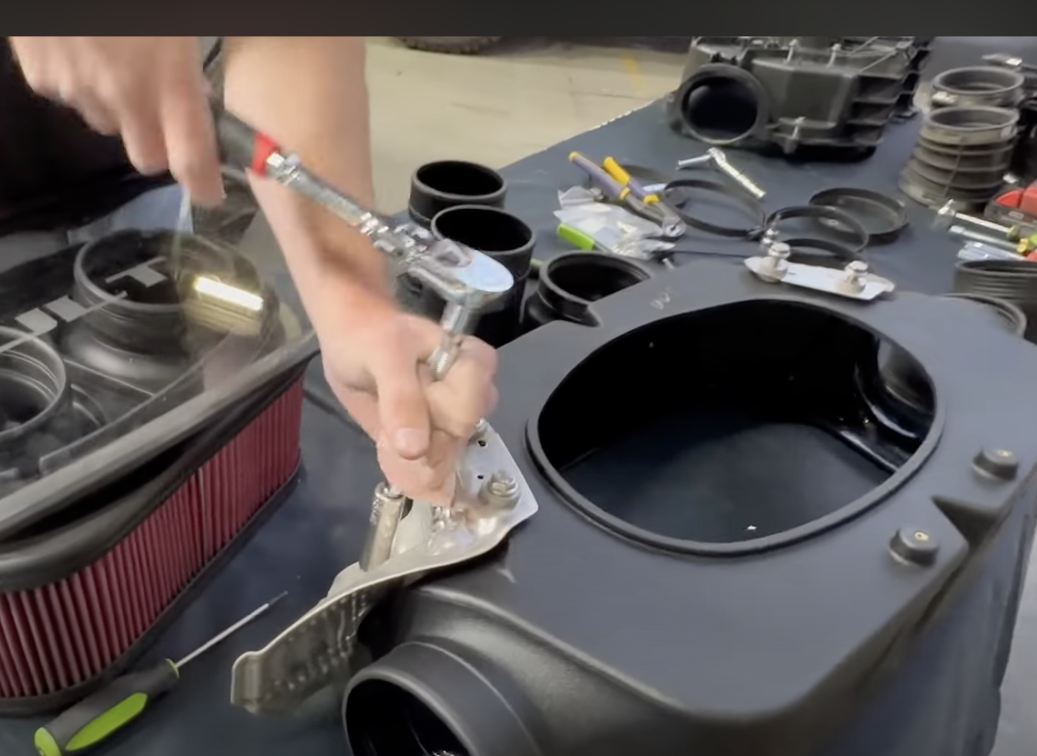 Install the 10mm into the bottom on the airbox. tighten down