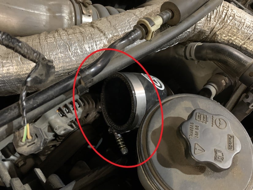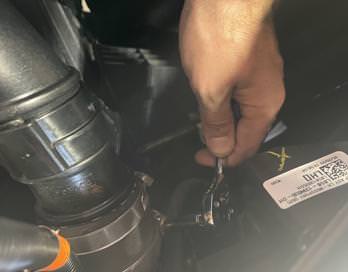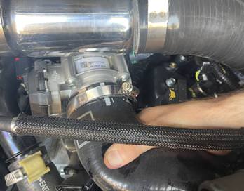 Loosen the hose clamp on the throttle body and pull off the rubber intercooler hose.