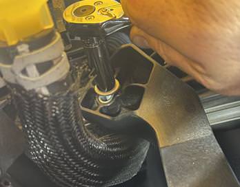 The lower T-Bolt Hose Clamp (E) should be positioned so that the spring and nut are pointed towards you and accessible from above as shown below.