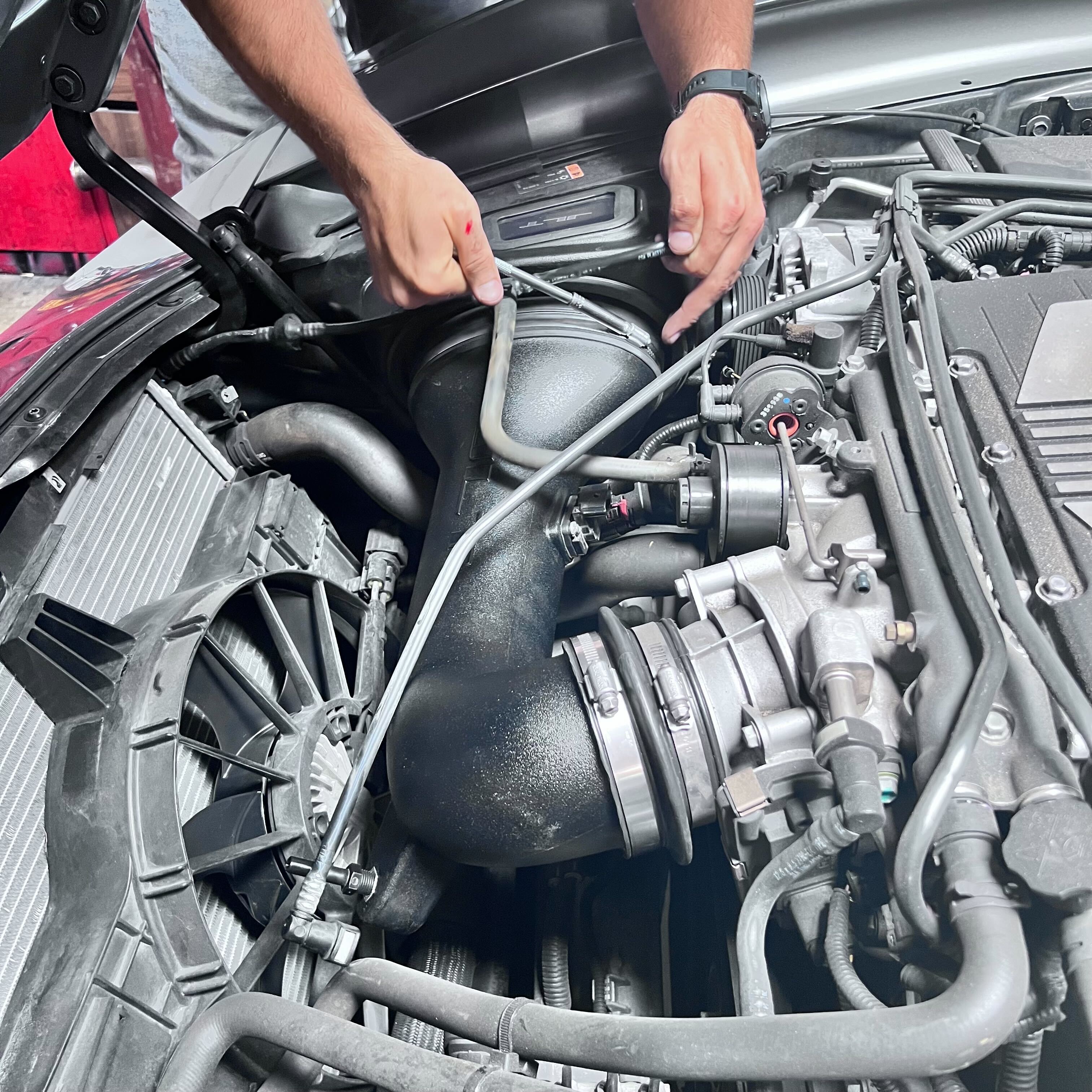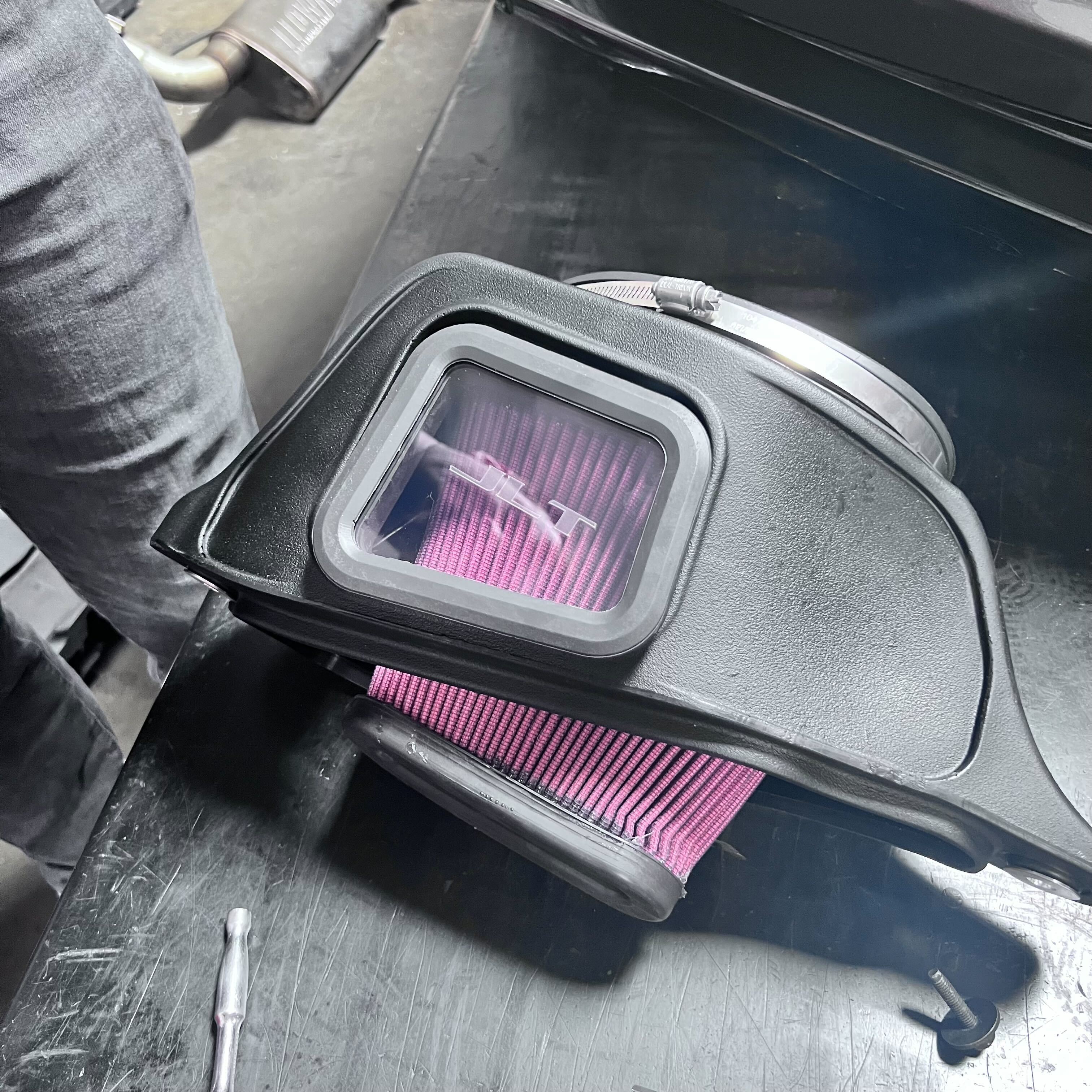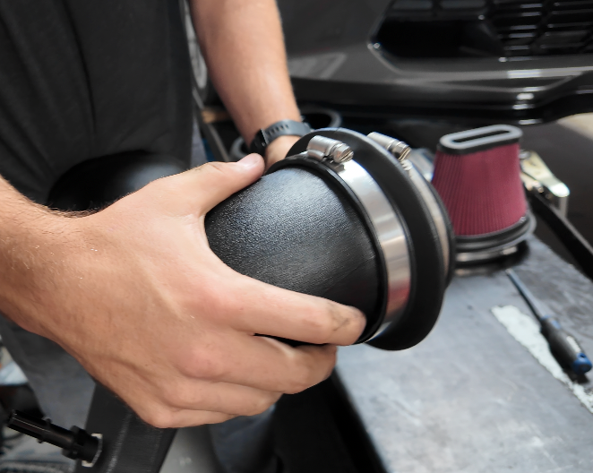 Once the intake kit is fully installed and all connection points are verified to be fully tightened, please reinstall the vent tube assembly.