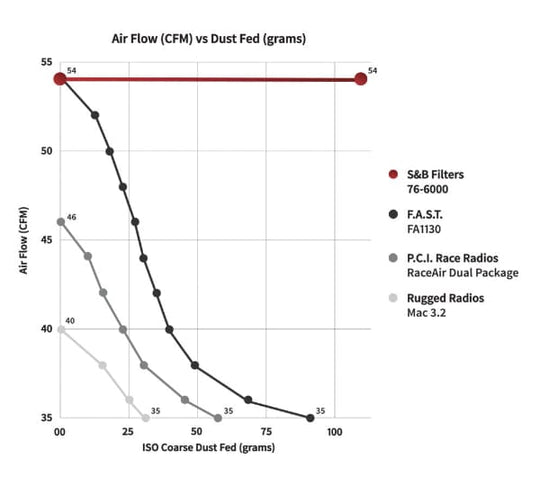 Even without a traditional filter, S&B's Helmet Particle Separator maintains a high efficiency rate in order to keep clean air pumping into your helmet. ISO Coarse Dust was utilized for testing in a climate controlled laboratory with one (1) 6-ft hose attached.