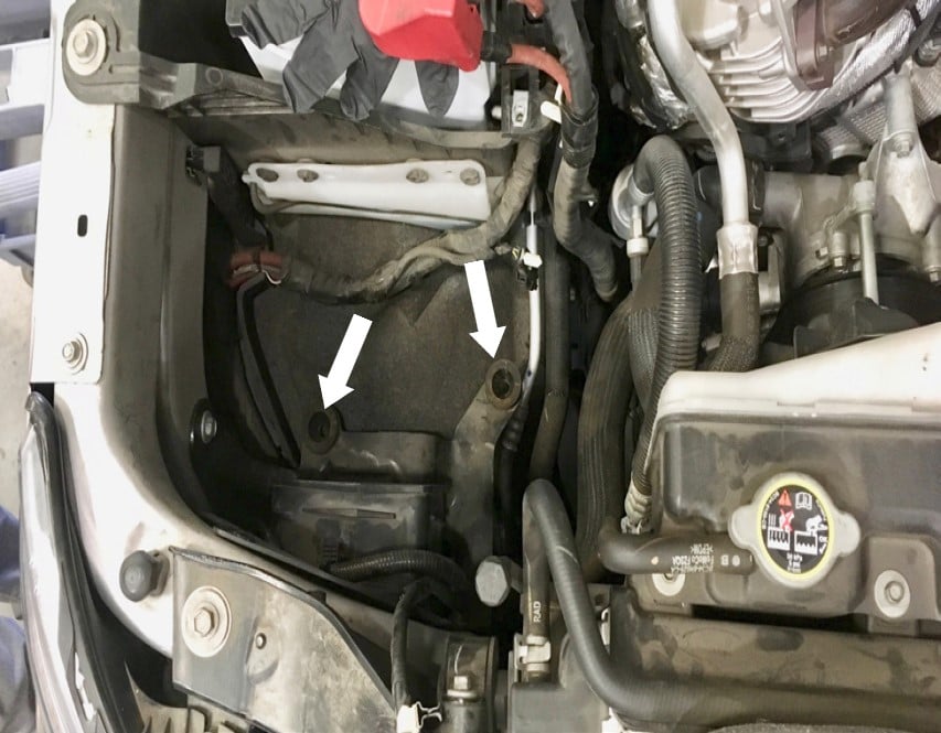 Disconnect both the positive and negative cables from the passenger side battery and disconnect only the negative cable from the battery on the driver side.