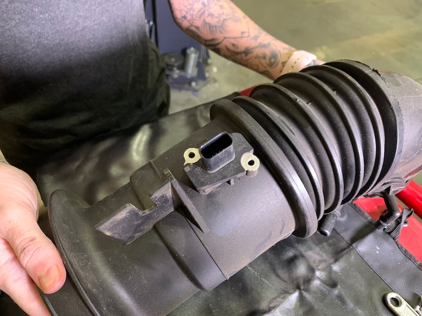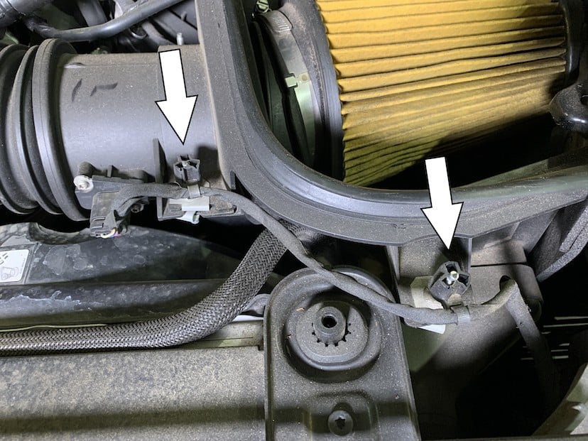 Pop off the MAF harness from it’s mounting points on the threaded studs connected to the stock intake box