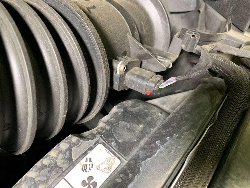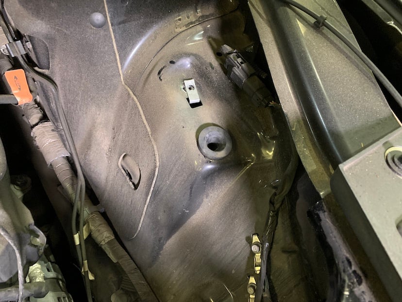 Verify that the grommet pictured did not come out of its hole on the vehicle with the stock intake box. If it did, remove it from the intake box and return it to its hole on the vehicle.