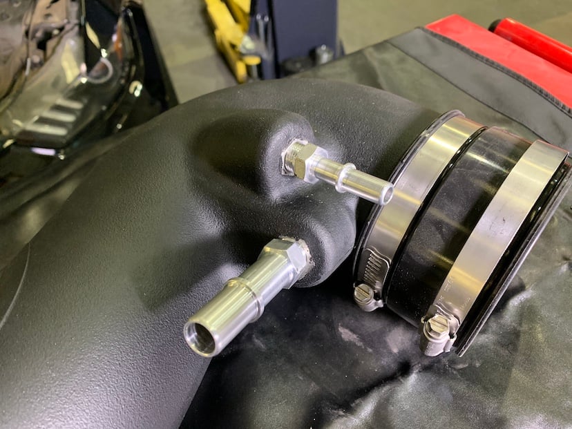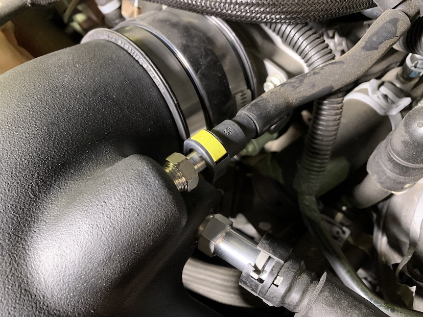 Connect the vacuum hose to the S&B intake tube, pressing it onto the ¼ NPT quick connect.