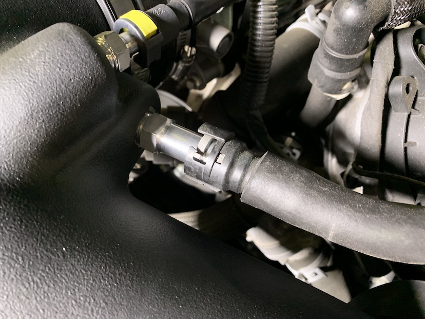 Connect the PCV hose to the S&B intake tube, pressing it onto the ⅜ NPT quick connect.