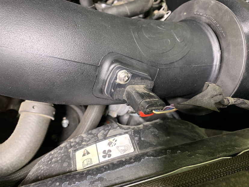 Secure the S&B intake box to the vehicle by reinstalling the screw removed in step 10.