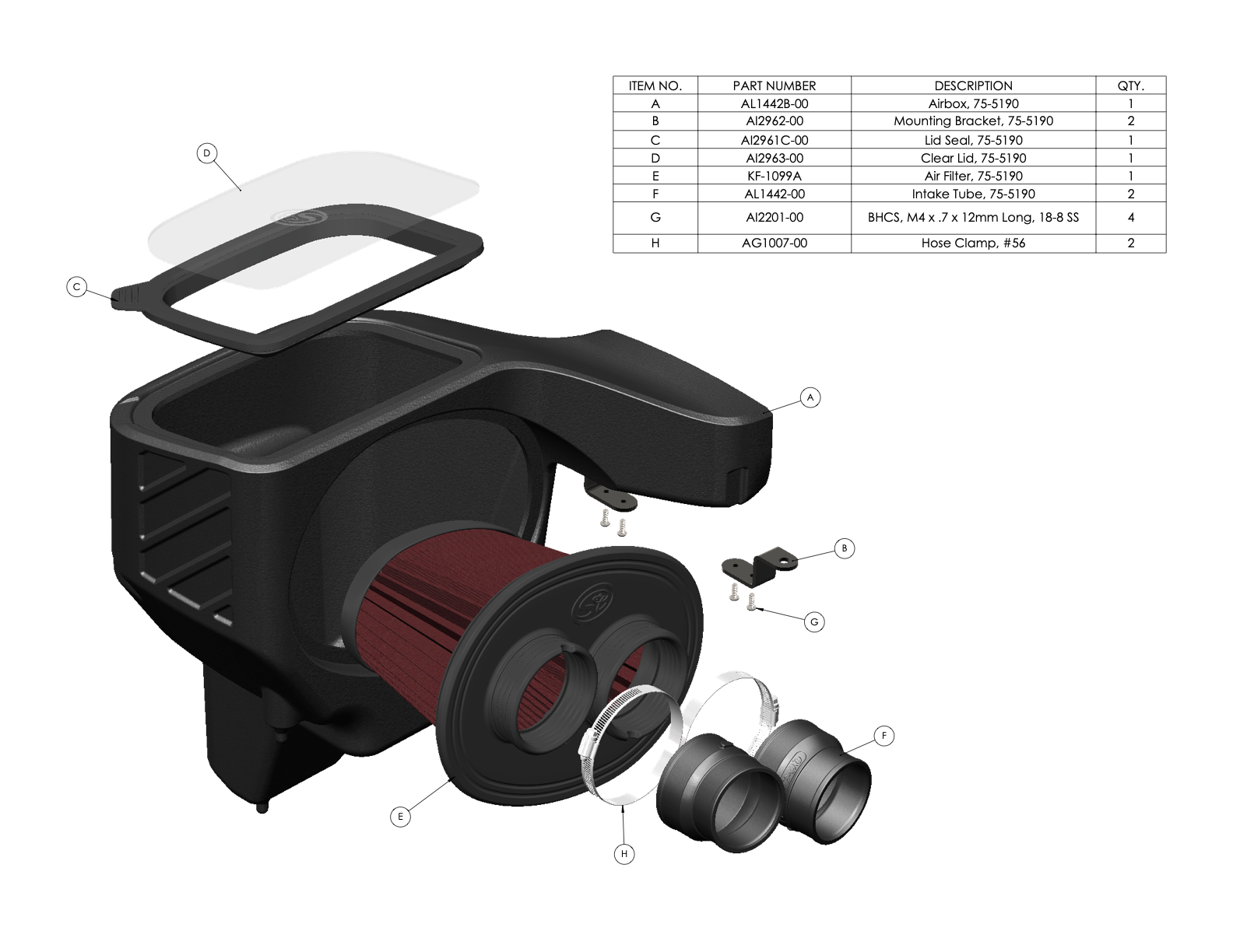 Install the S&B air filter into the S&B airbox. Then attach the hose clamps onto the flanges.