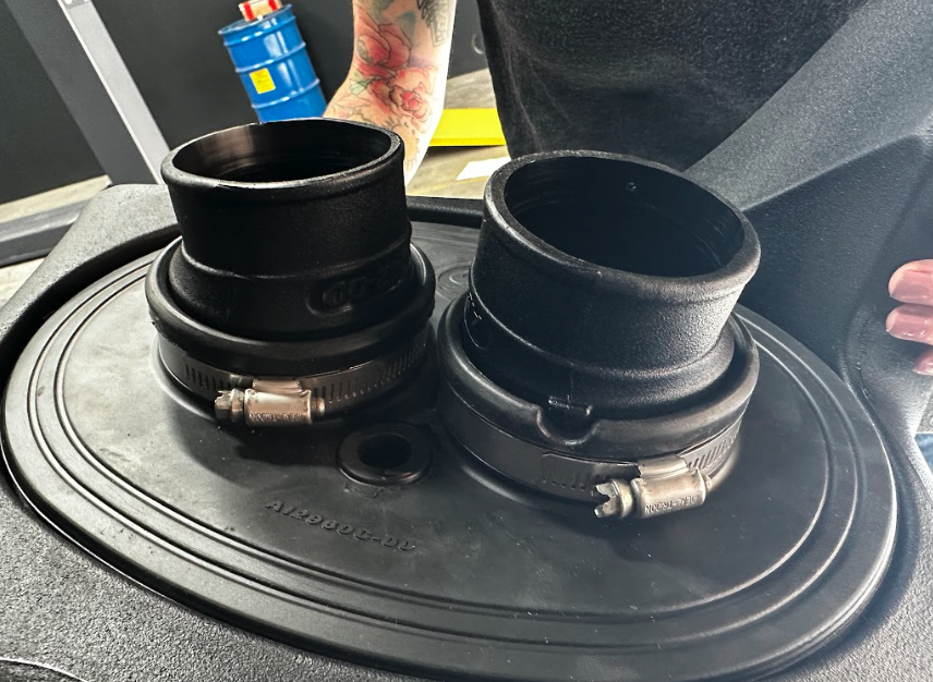 Install the S&B provided tubes into the S&B air filter. Then, tighten down the hose clamps.