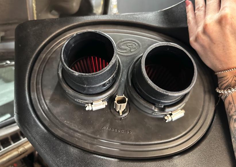 Connect the IAT sensor then install the S&B air box into the vehicle.